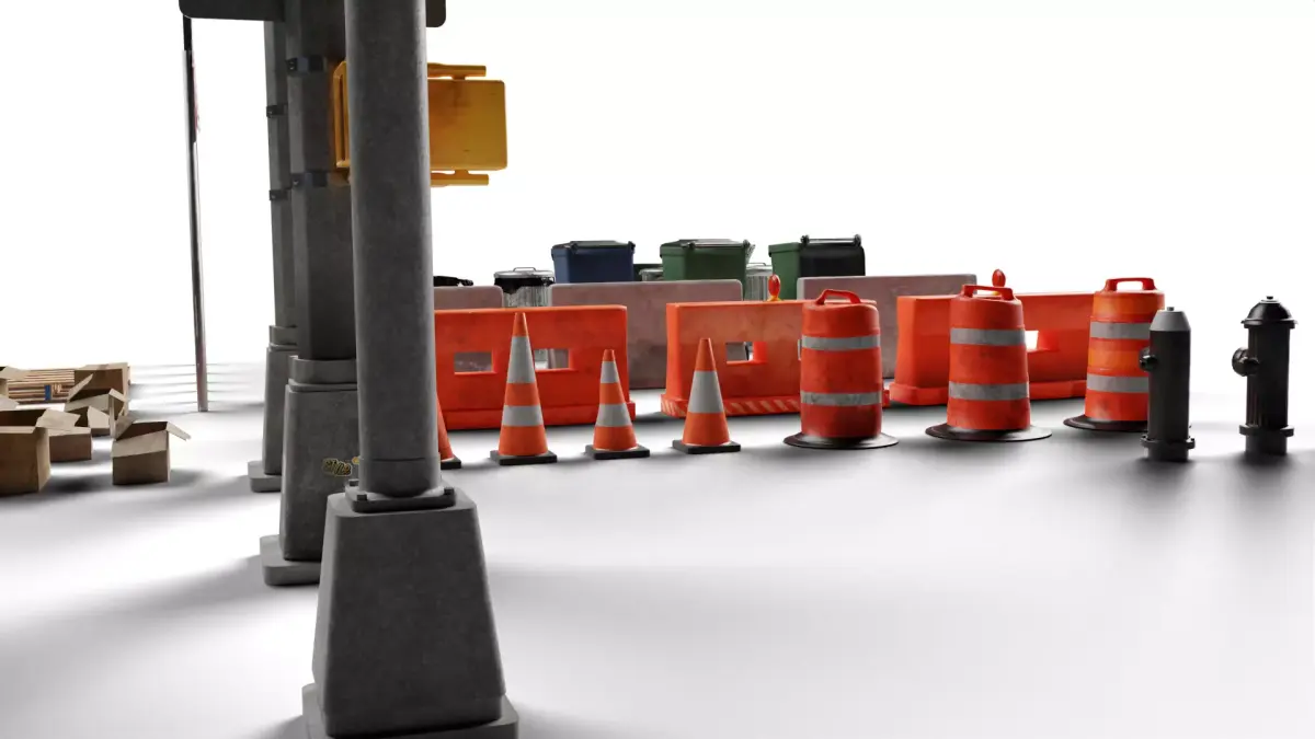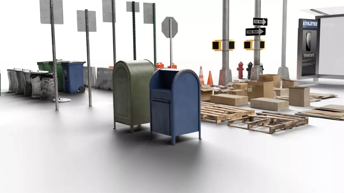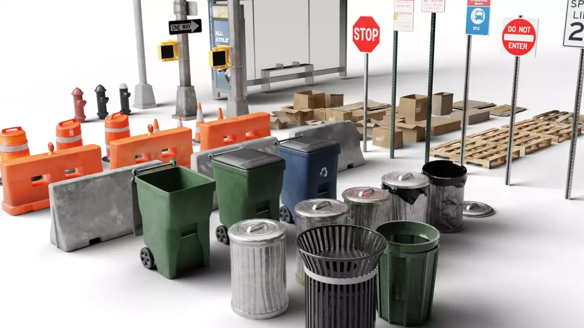 This collection features 65 unique Urban assets designed for realistic city environments. including Fire hydrants, Mail boxes, Barriers, Boxes, pallets, Traffic Lights, Street Signs along with other essential props for creating detailed urban scenes. All the objects have baked PBR maps for ease of use. All files, materials and models are logically named. The warehouse scene is not included.