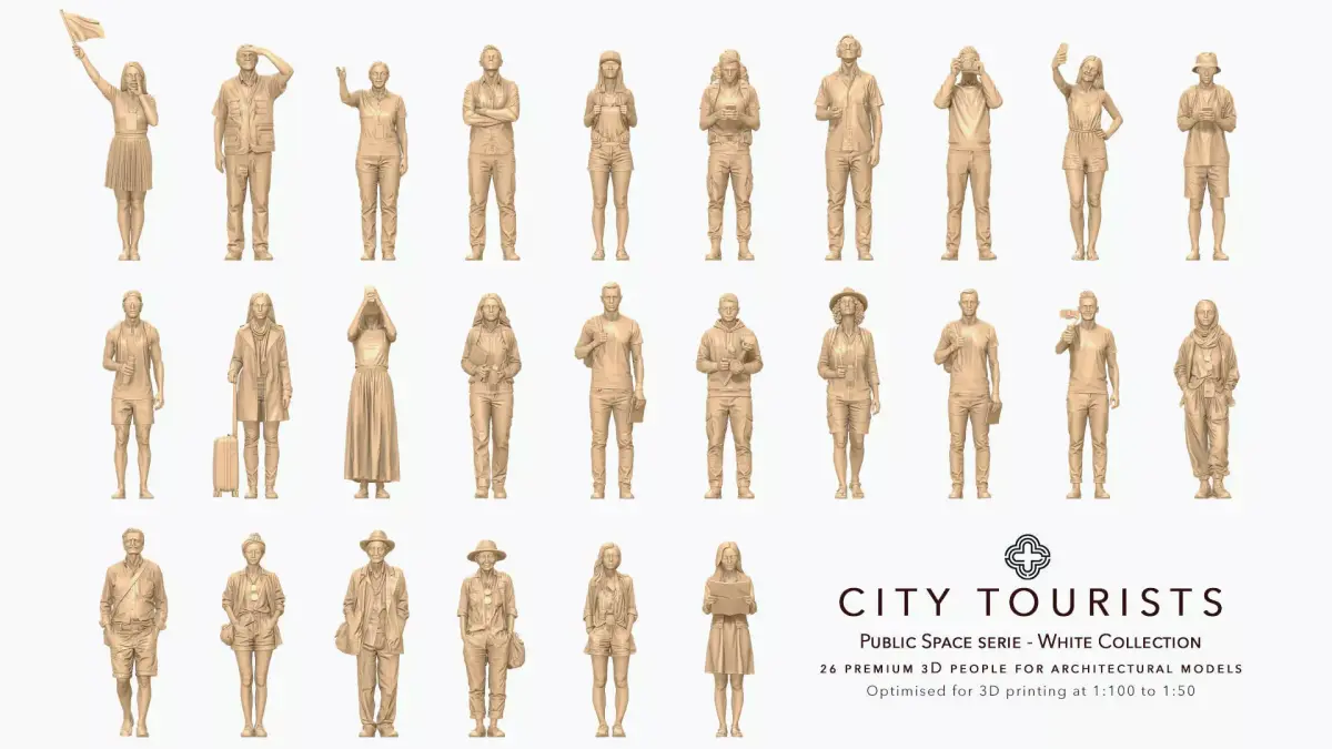 Designed to populate heritage sites, cultural centers, and busy urban plazas, these figures add a layer of storytelling to your scale models, depicting the universal experience of discovering a new city.