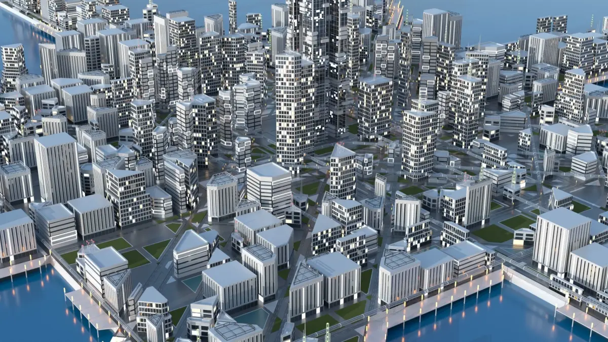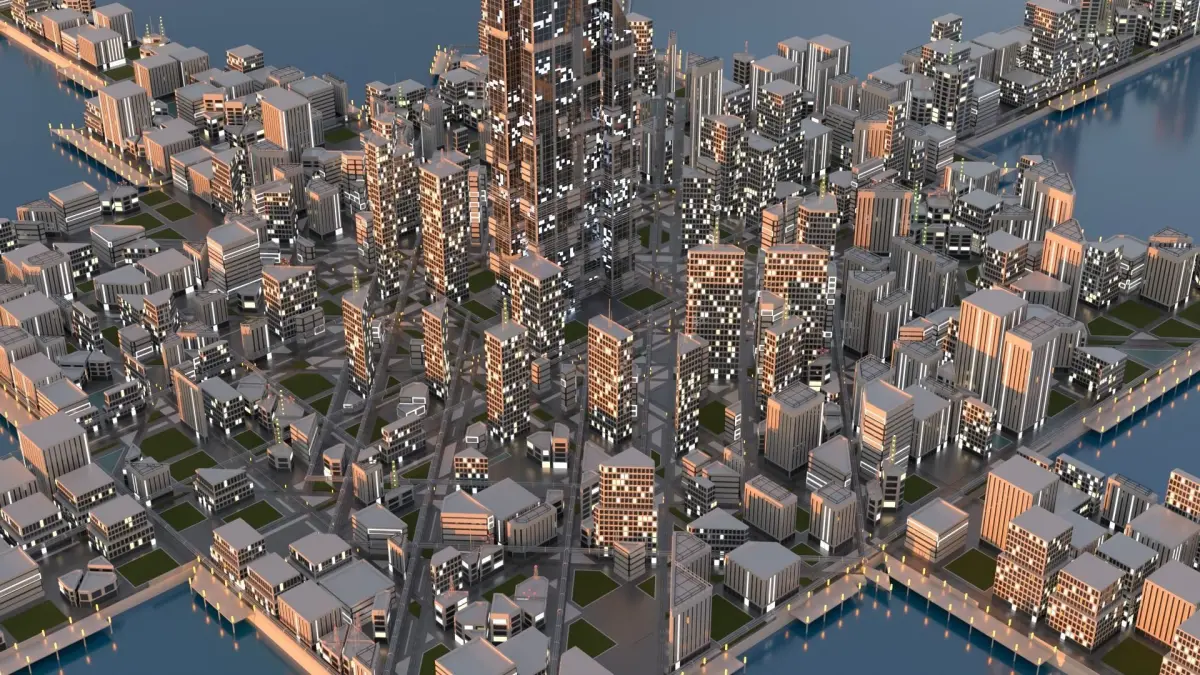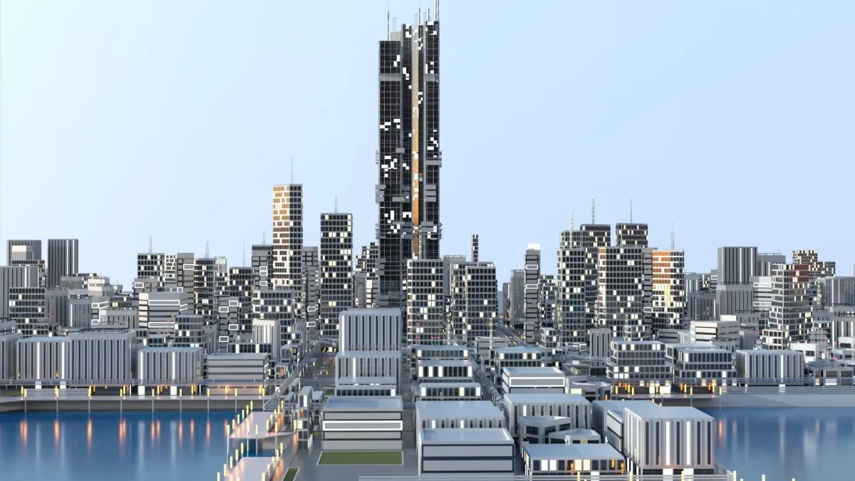 Detailed modern cityscape.Perfect for animations and real-time applications.Lighting setup is not included.