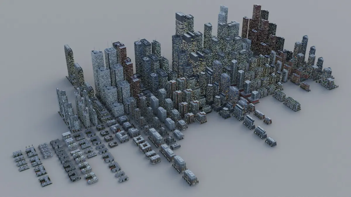 Collection contains unique 89 skyscrapers and 147 apartments from around the world, with street and plants. and also includes a scene with daytime, cloudy and evening HDR lighting, which are shown in the redners. It also contains presets for most of the cameras in the scene, you can upload them and change them as you like. The scene is only illustrative because it depends on you what kind of city you need, and thanks to my buildings you can build practically any modern city. You get all the buildings along with the scene, plants and streets, all the geometry is on the instance but you can also replace it with a proxy whenever you want.