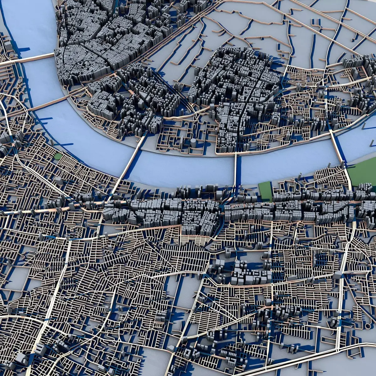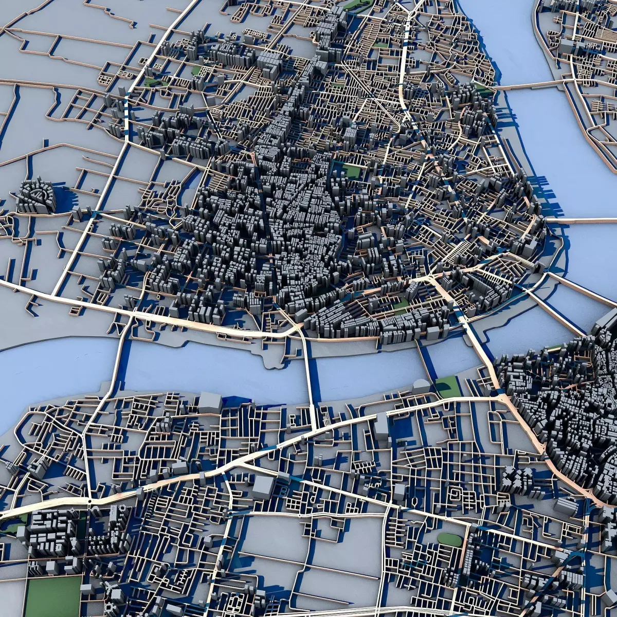 The .ZIP folder contains separate .STL files – buildings, water, vegetation, base etc.