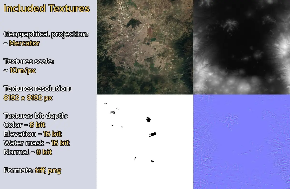 Warning: minor clouds/artifacts may be present on the diffuse color satellite texture due to the nature of the dataset. Check product images.