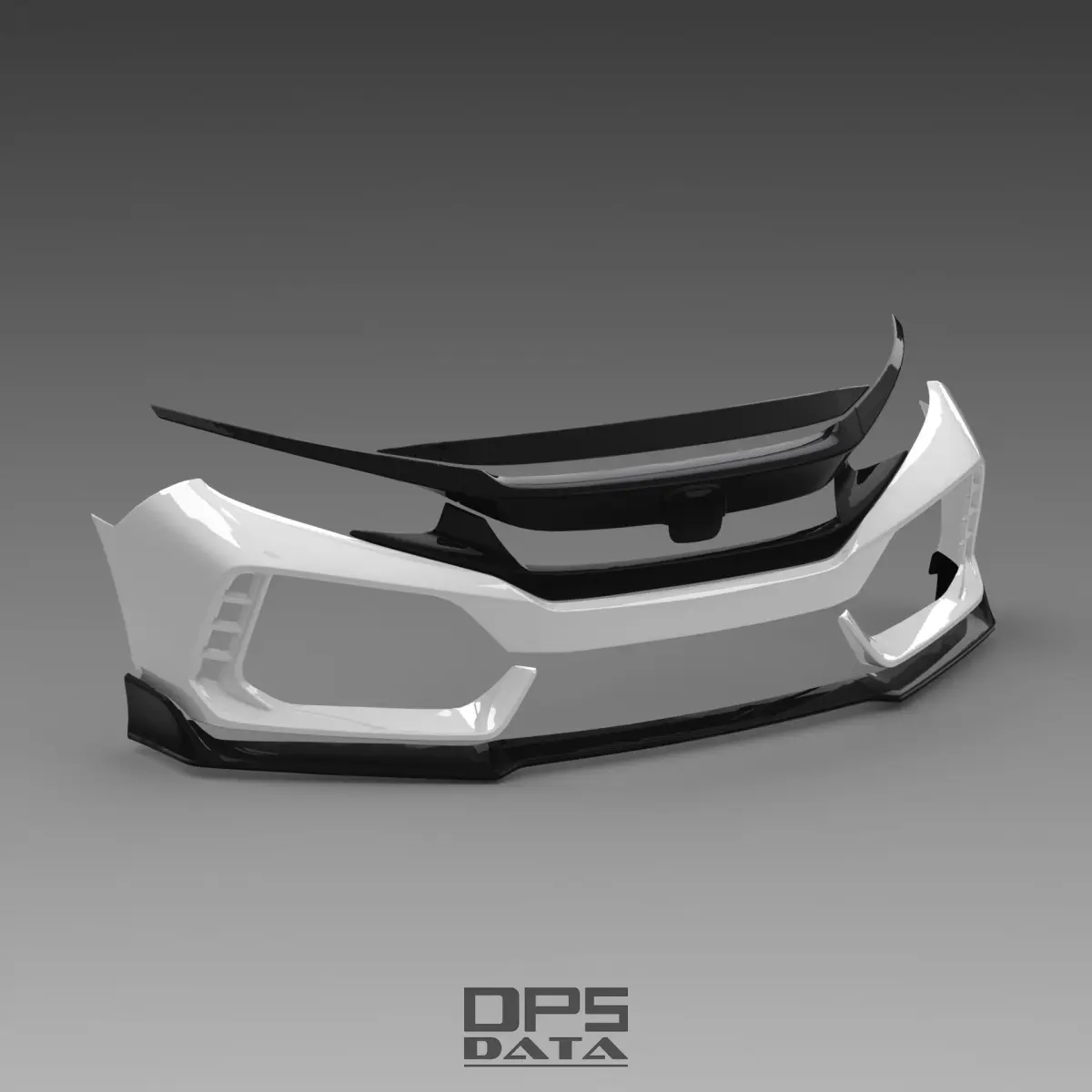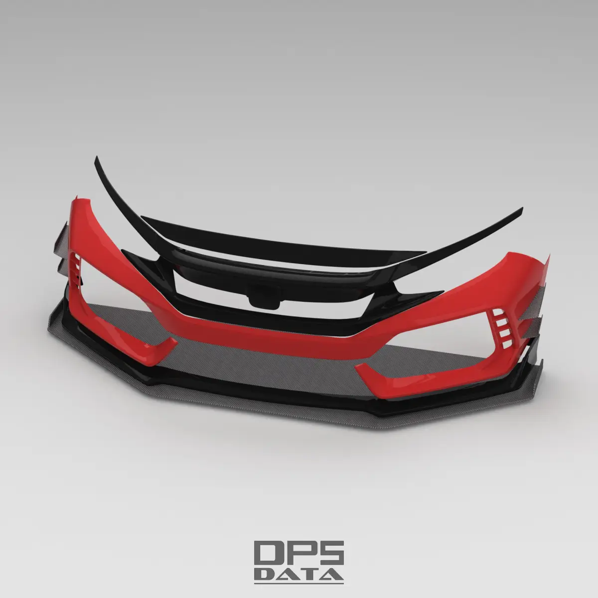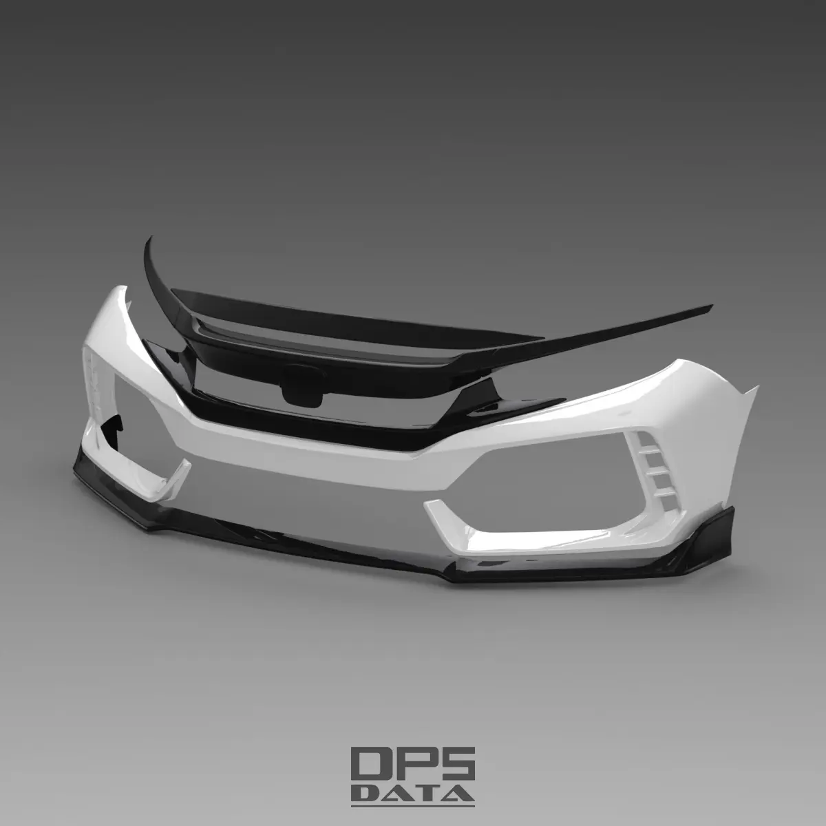 CIVIC TYPE R FK8 Front Bumper Surface model in both SolidWorks 2020 & Parasolid file formats ready for import into most CAD systems. This model is intended to help empower designers/enthusiasts looking for accurate data to design modifications such as front canards/front splitters/etc. for their cars. This model shares a common coordinate system with the other CIVIC_TYPE_R_FK8 models by DPS Data, allowing assembly of front/rear or full exterior surface assemblies by combining the components together. Expected dimensional variance in the data vs the real-life car is typically between 150-250 microns (0.006”-0.01”) with the methods used to create this model.Included in this download:SolidWorks 2020 [CIVIC_TYPE_R_FK8 - Front Bumper.sldprt] component file.Universal Parasolid [CIVIC_TYPE_R_FK8 - Front Bumper.X_T] component file.