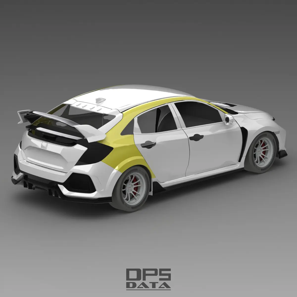 CIVIC TYPE R FK8 Rear Quarter Panels Surface model in both SolidWorks 2020 & Parasolid file formats ready for import into most CAD systems. This model is intended to help empower designers/enthusiasts looking for accurate data to design modifications such as overfenders/side skirts/aero kits/etc. for their cars. This model shares a common coordinate system with the other CIVIC_TYPE_R_FK8 models by DPS Data, allowing assembly of front/rear or full exterior surface assemblies by combining the components together. Expected dimensional variance in the data vs the real-life car is typically between 150-250 microns (0.006”-0.01”) with the methods used to create this model.Included in this download:SolidWorks 2020 [CIVIC_TYPE_R_FK8 - Rear Quarter Panels.sldprt] component file.Universal Parasolid [CIVIC_TYPE_R_FK8 - Rear Quarter Panels.X_T] component file.