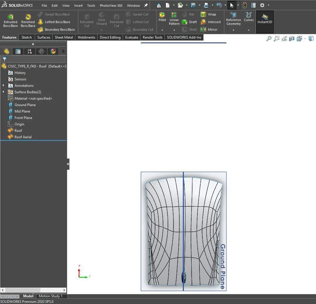 CIVIC TYPE R FK8 Roof Surface model in both SolidWorks 2020 & Parasolid file formats ready for import into most CAD systems. This model is intended to help empower designers/enthusiasts looking for accurate data to design modifications such as wind deflectors/aero components/etc. for their cars. This model shares a common coordinate system with the other CIVIC_TYPE_R_FK8 models by DPS Data, allowing assembly of front/rear or full exterior surface assemblies by combining the components together. Expected dimensional variance in the data vs the real-life car is typically between 150-250 microns (0.006”-0.01”) with the methods used to create this model.Included in this download:SolidWorks 2020 [CIVIC_TYPE_R_FK8 - Roof Panels.sldprt] component file.Universal Parasolid [CIVIC_TYPE_R_FK8 - Roof Panels.X_T] component file.