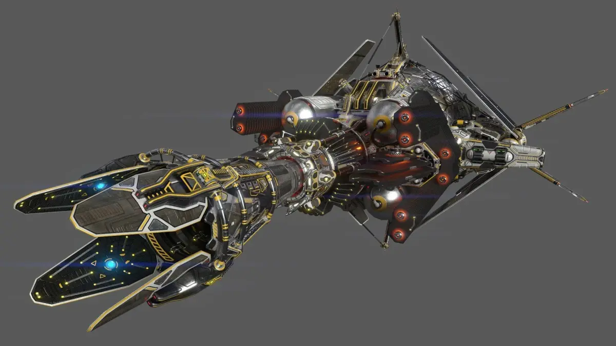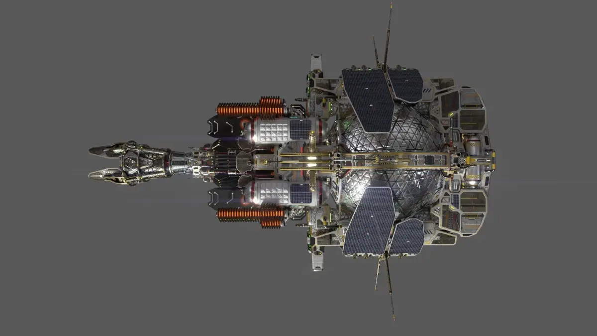 After the War of Greed, which swept through the entire solar system like a fiery hurricane and brought down the entire space economy of mankind, there was an urgent need to quickly produce a huge number of cheap and easy-to-operate transport ships, relying only on the surviving production facilities of the Empire and the expertise of the few remaining loyal Corporations. The result of this collaboration was a project with a not very romantic, but quite appropriate name Dromedary. Severe post-war restrictions led to a technical downgrade not only of this, but of many subsequent engineering projects, especially in the field of propulsion systems. In particular, it was decided to abandon the already standard fusion propulsion system, returning to the now obsolete fission system, making all kinds of improvements and modifications to it in the process.The second and perhaps more important element of the «Dromedary» project was the development of its advanced nuclear engine. Although it was still inferior to the fusion engines in many ways, especially in terms of compactness and fuel efficiency, this engine was nevertheless based on well-developed, well-studied and time-tested technology, which made it possible to create a fairly simple, reliable and powerful engine. Simplicity and a relatively low technological level also made it possible to quickly establish mass production in the shortest possible time. So, despite its obvious inherent shortcomings, this system not only fulfilled its role and allowed to reanimate the space economy, but also earned universal recognition among free entrepreneurs and the title of people's engine. He earned special love for his reliability and long range, allowing the ship to travel throughout the solar system without frequent refueling.Be that as it may, as a result of this forced collaboration of the once warring parties, one of the most successful designs of a civilian cargo ship was created.