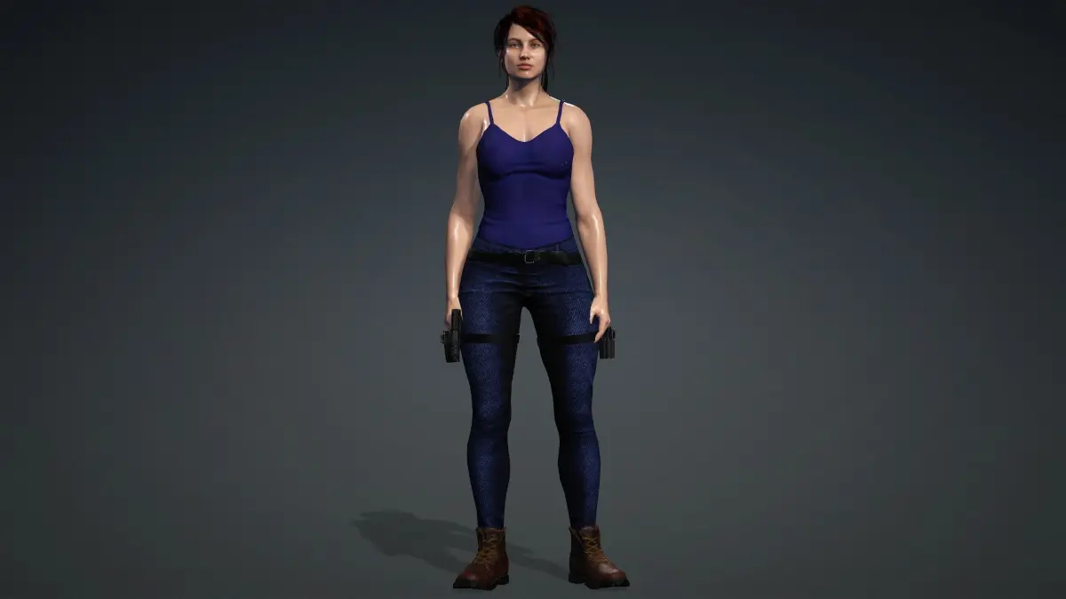 Low-poly 3D model of Claire Redfield from Residual Evil series with action animations.