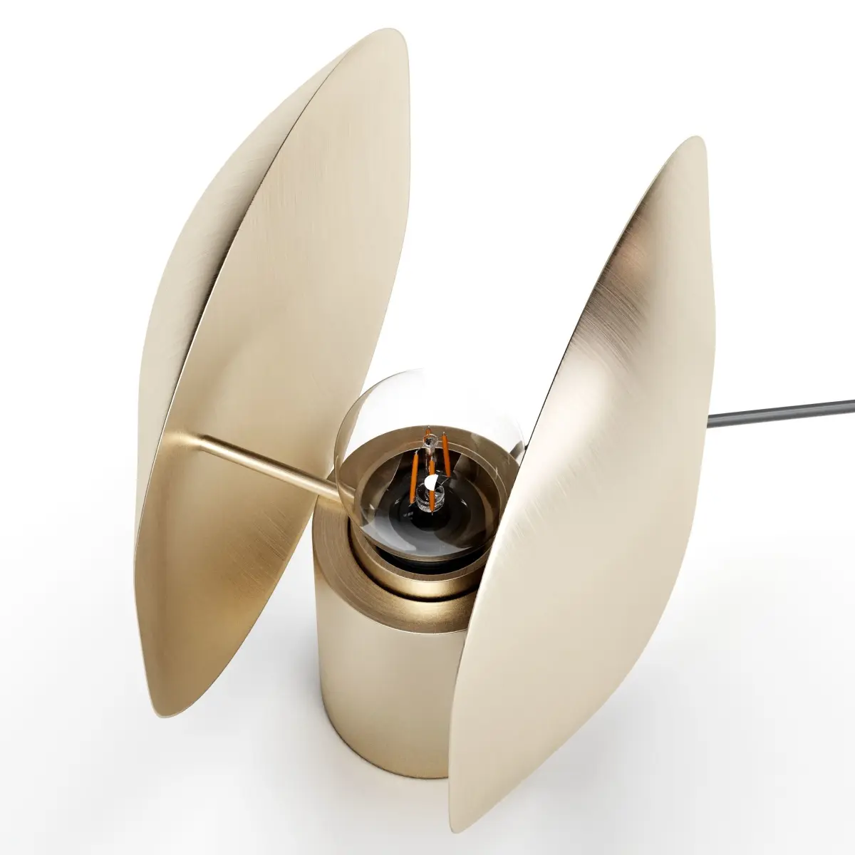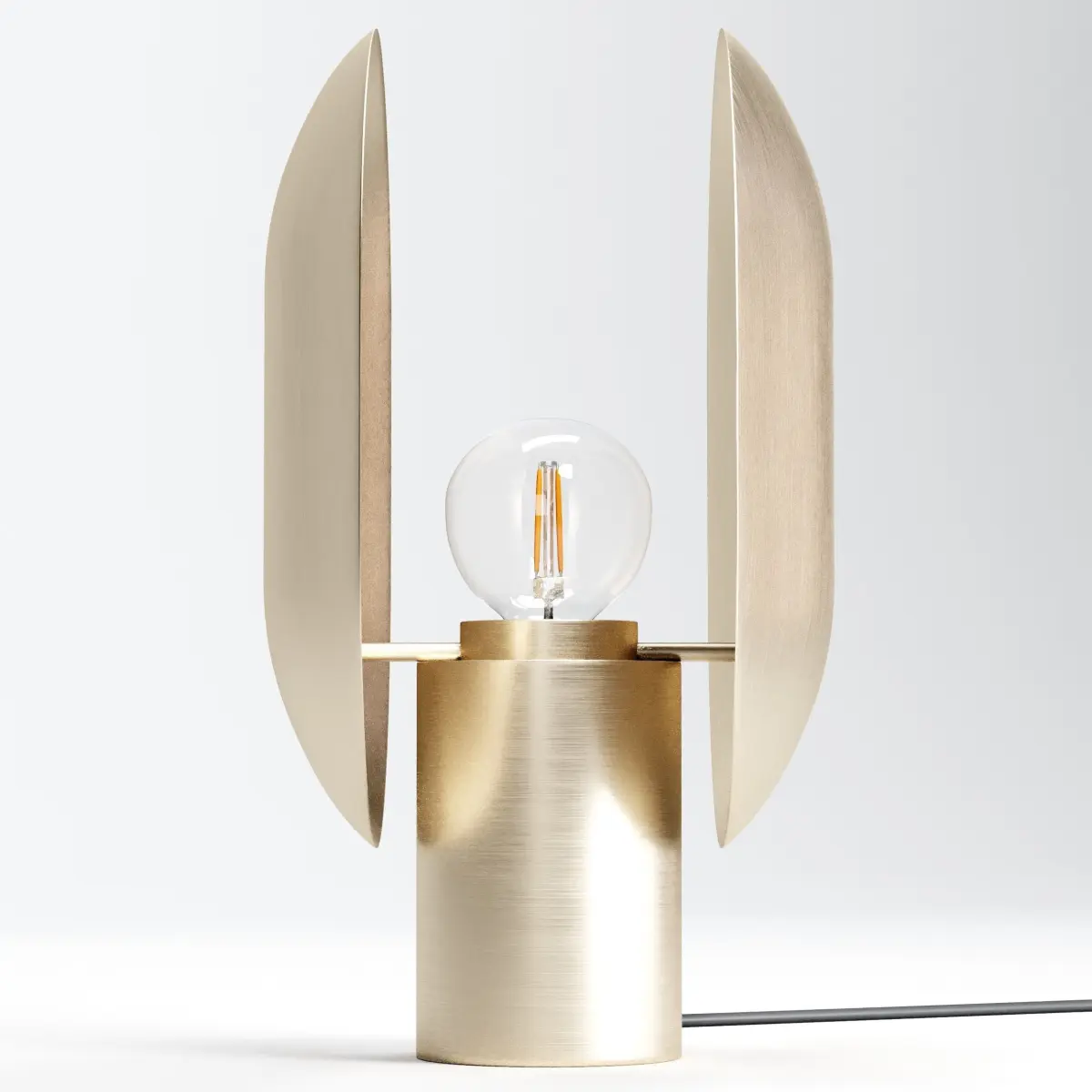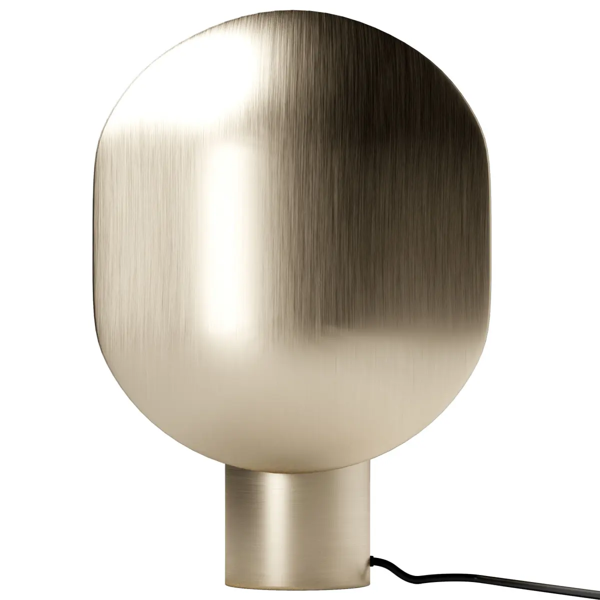 Clam Table LampThe Clam series consists of a table and a wall lamp characterized by its two opposing shades playingwith direct and indirect lighting. In a very Japaneseinspired, the minimalist lamp smoothly reflects thelight to both sides of the gently curved manner metal screens.(Taken from the product description)