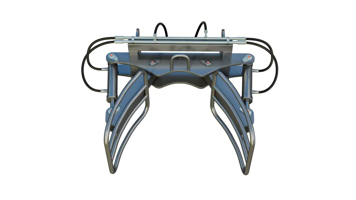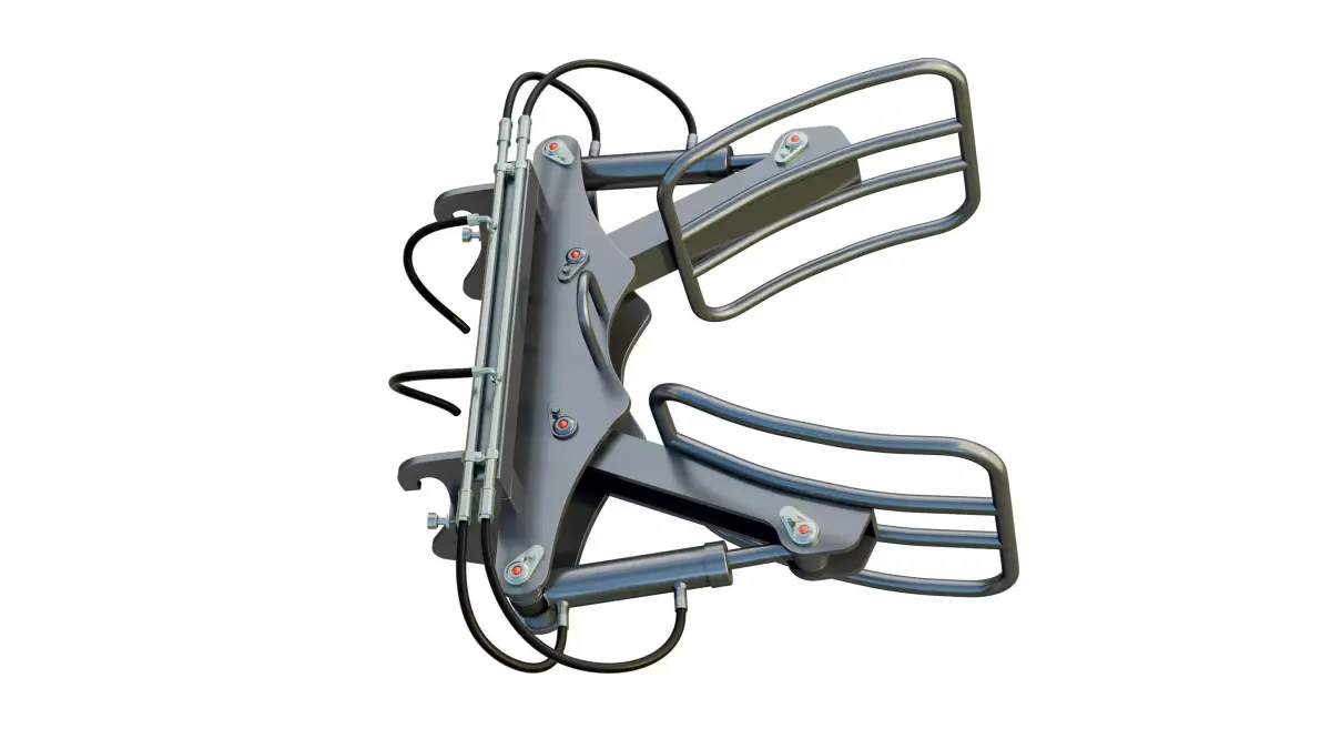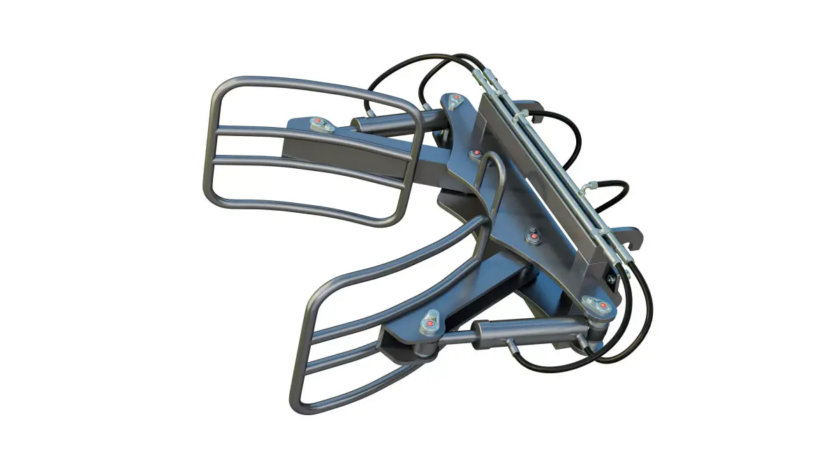 This is a high-quality, professional 3D model of a Hydraulic Round Bale Clamp Attachment , designed for loaders, skid-steer loaders and tractors. technical presentations, and training simulations.
