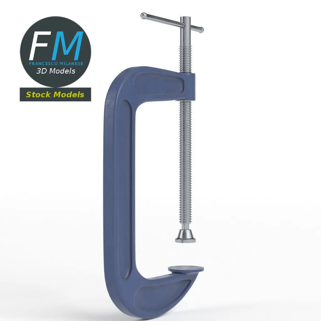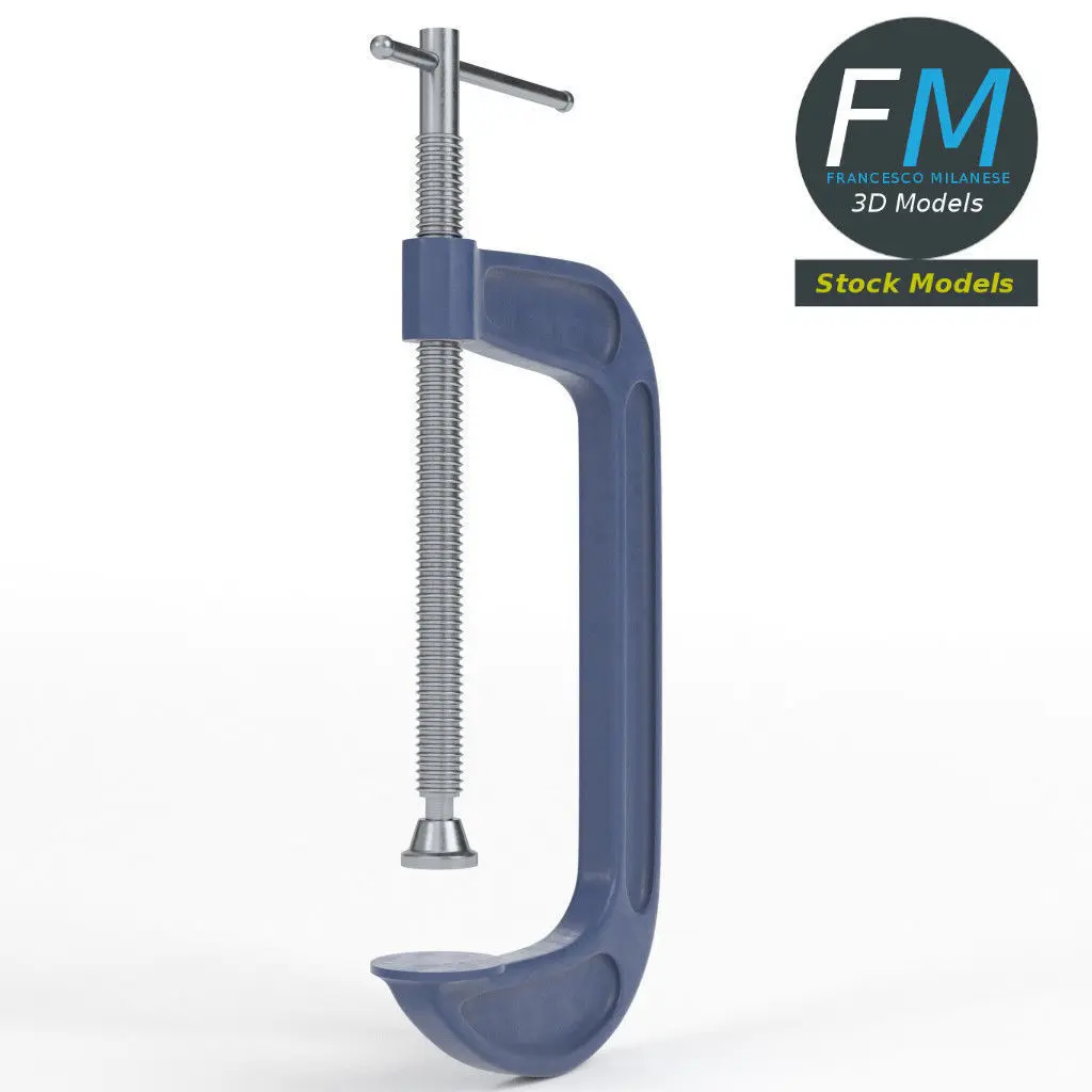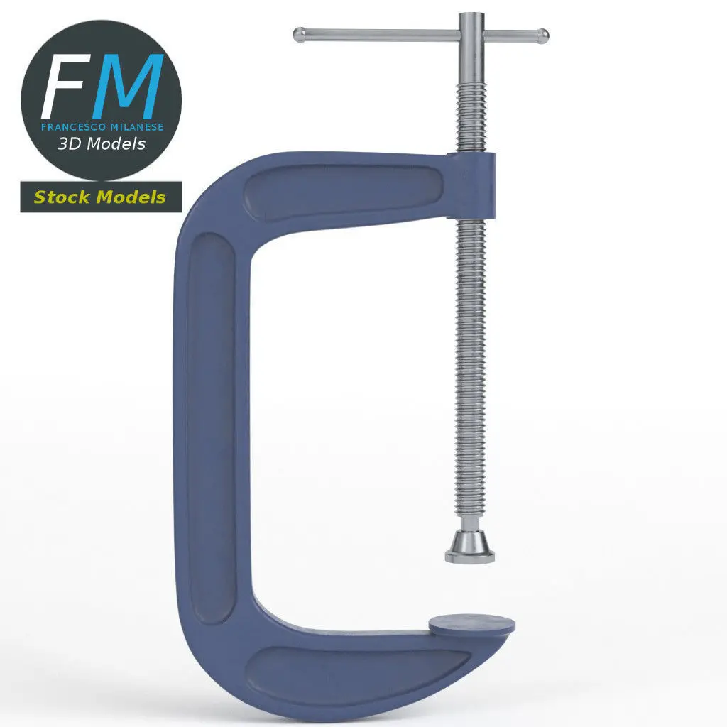 C-clamp (G-clamp) fastening tool 3D Model. The screw is a fake screw, so this model is not suitable for 3D printing. 2 individual objects (frame, screw_and_handle; so, you can move or even animate the screw), each one with its own non overlapping UV Layout map, Material and PBR Textures set. Production-ready 3D Model, with PBR materials, textures, non overlapping UV Layout map provided in the package.
