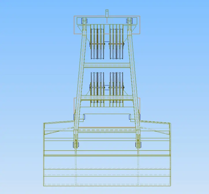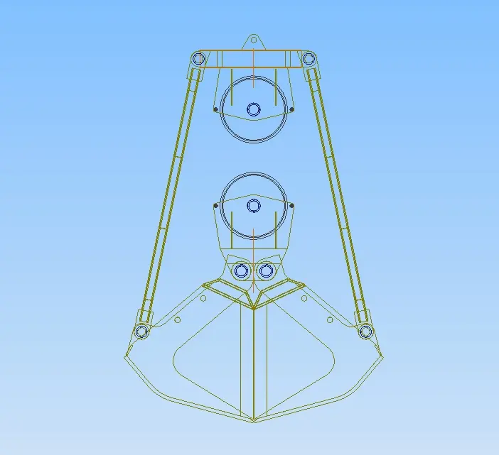 The clamshell bucket is a articulated several-pieces device, including two elementary buckets associated on a hinged structure forming a claw-like appendage with an internal volume.