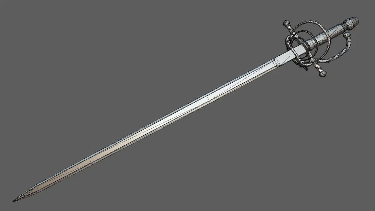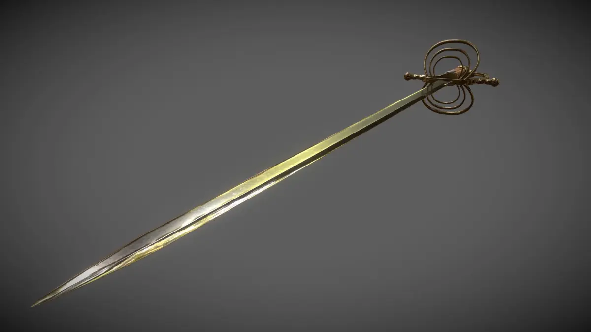 A french clamshell rapier low poly game asset. contains 1 uv map. Texture variants are for unreal engine (including packed files), unity (metalic standard) and generic PBR
