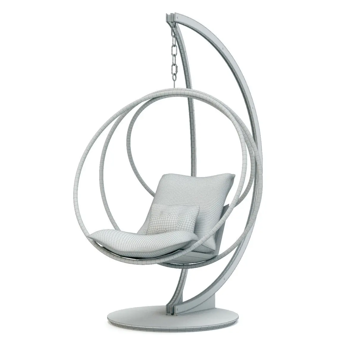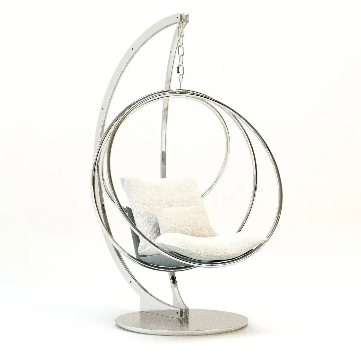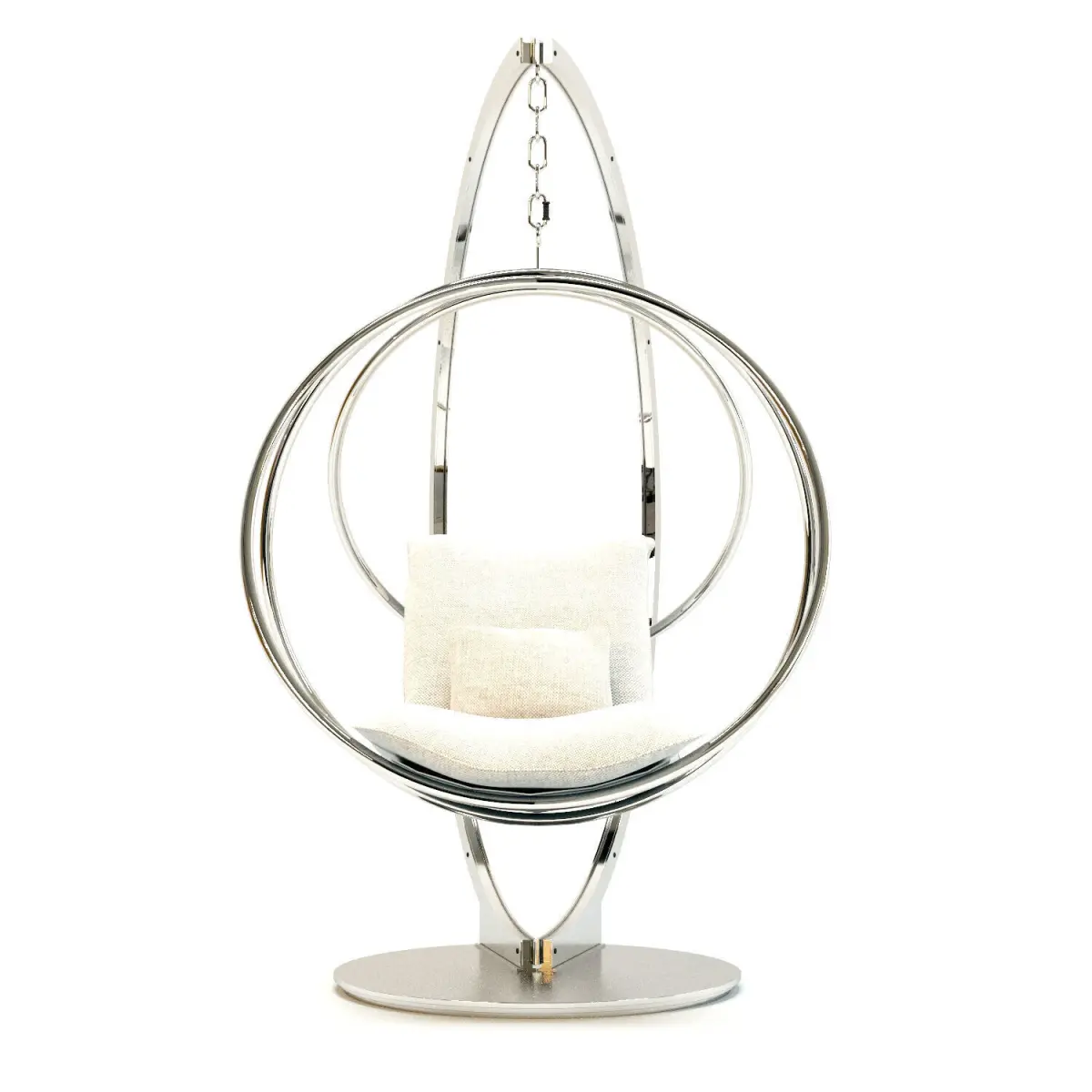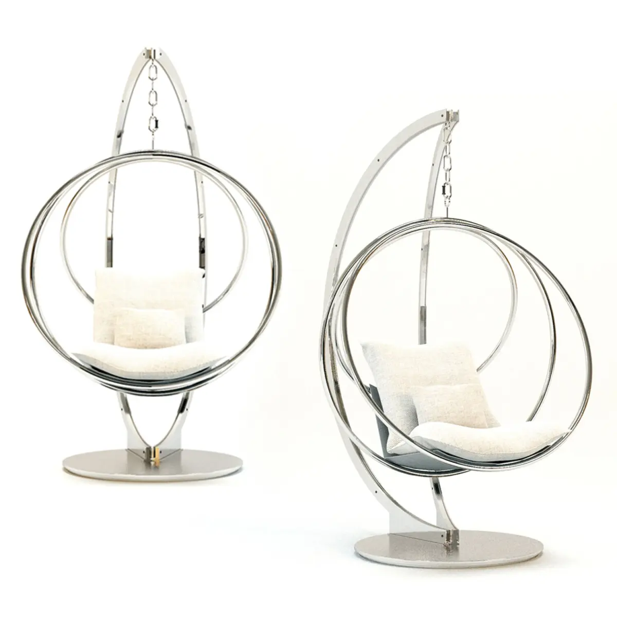 Clara Swing is an outdoor fabric upholstered garden hanging chair with polished and satin AISI 316 stainless steel structure.