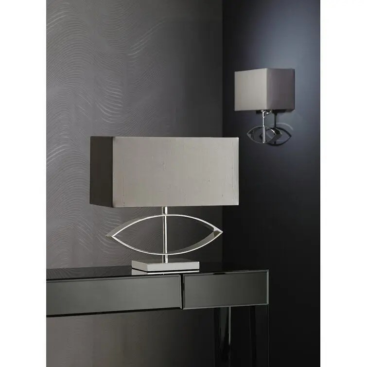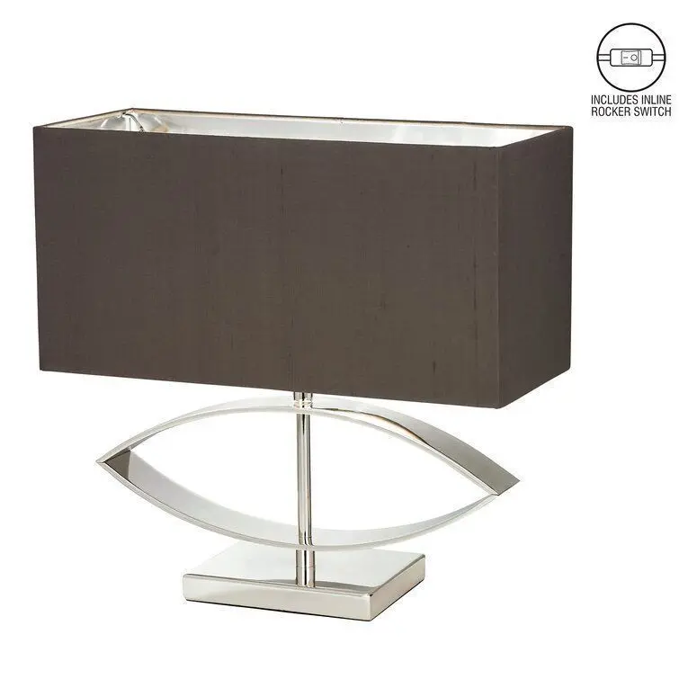 - Featuring a silver-plated stand and a rectangular shade, this table lamp adds a contemporary touch to your home
