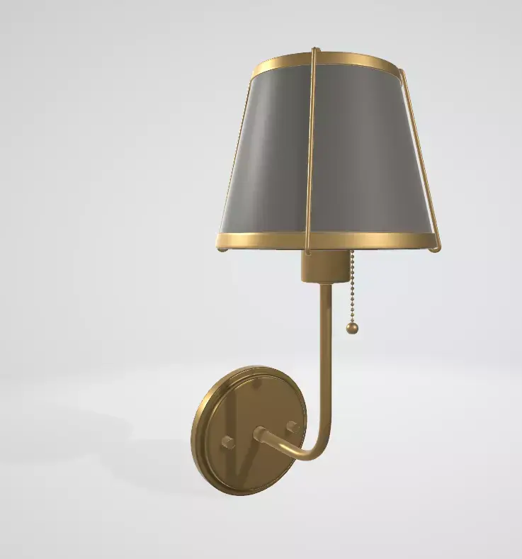 Clarke Wall Light with Pull switch - Warm Brass & Black Metal Shade-created by blender mesh clean, soft, smooth. -mesh count less than 200000 -created by mesh 4 -main axis (0,0,0) is located at the lowest center point of the product -attached material with substance paint -exported to glb view -has accompanying textures: diffuse, normal, hight, ao, roghness