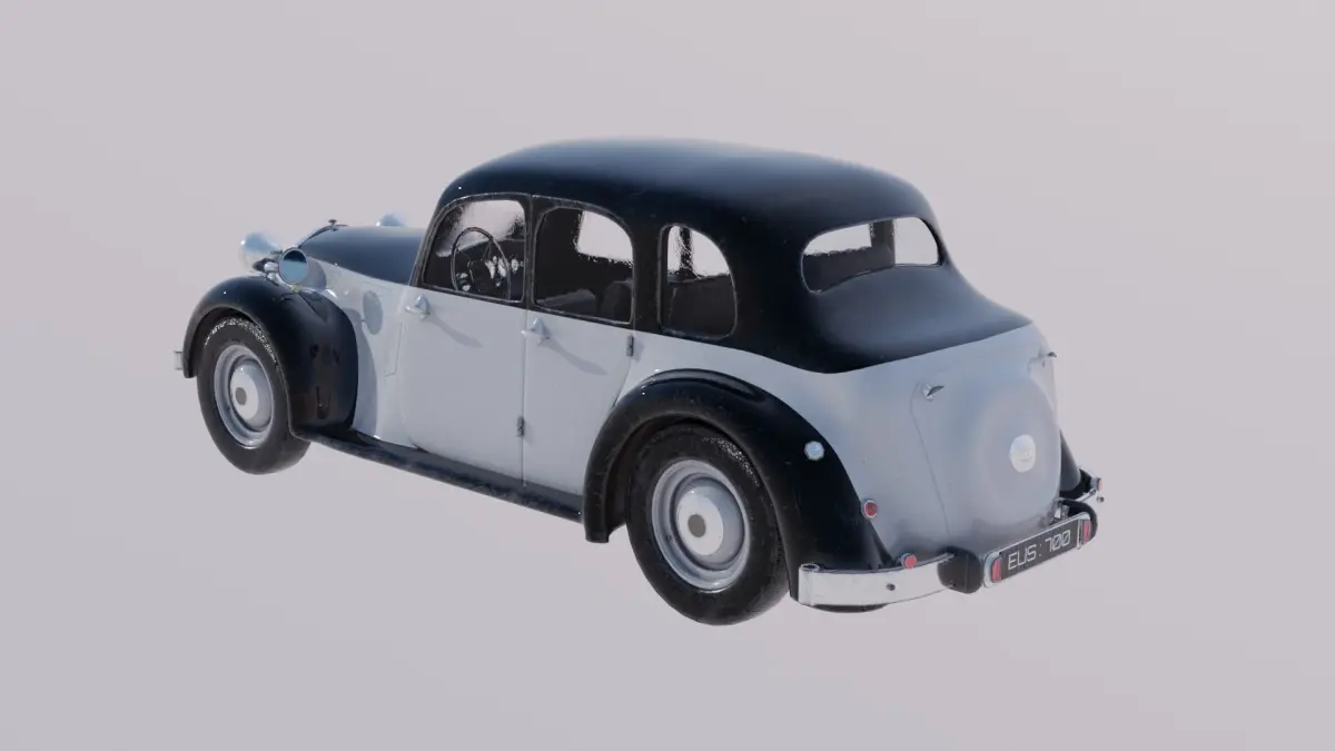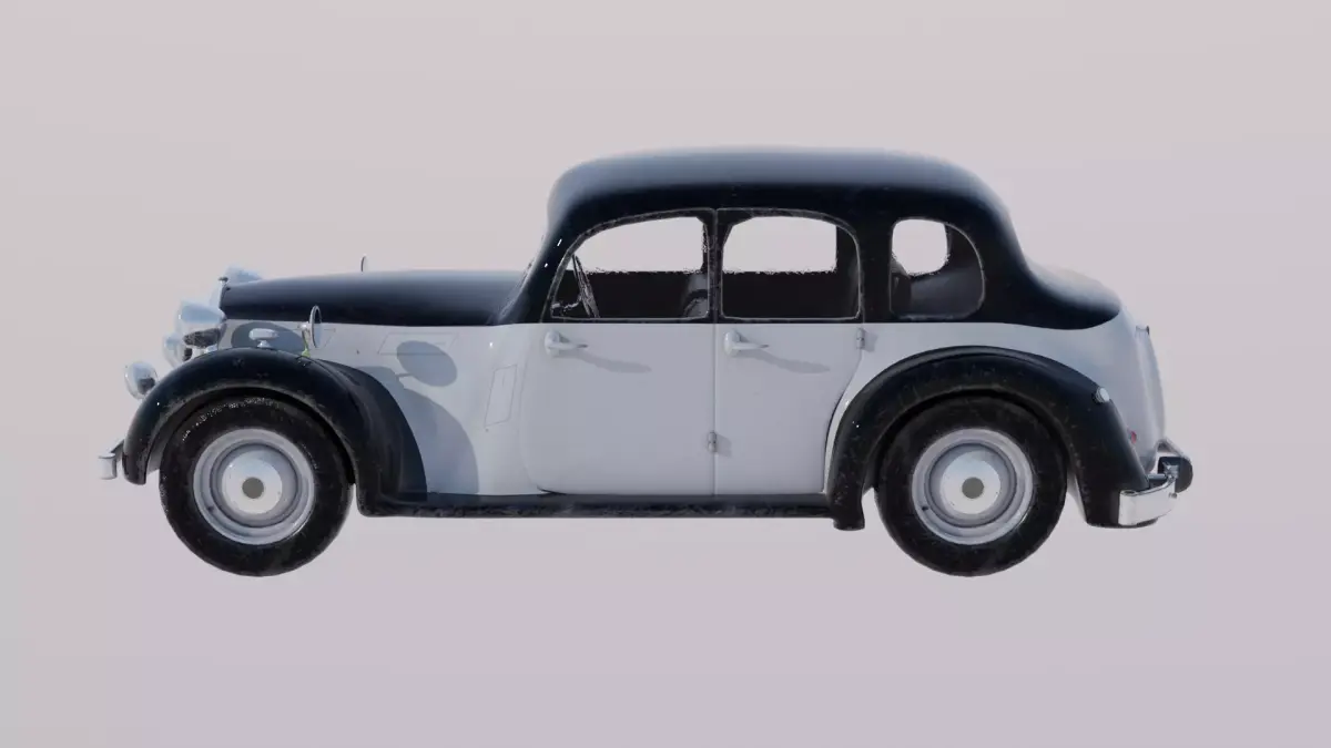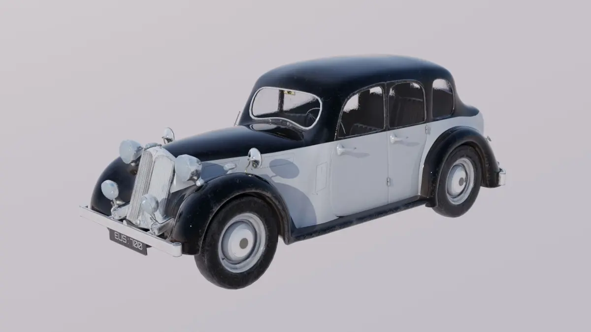 A highly detailed 3D model of a vintage four-door sedan, inspired by mid-20th century British car designs. Perfect for historical scenes, retro environments, or stylized projects, this model is available in both realistic PBR and stylized Toon shader variations for maximum versatility.