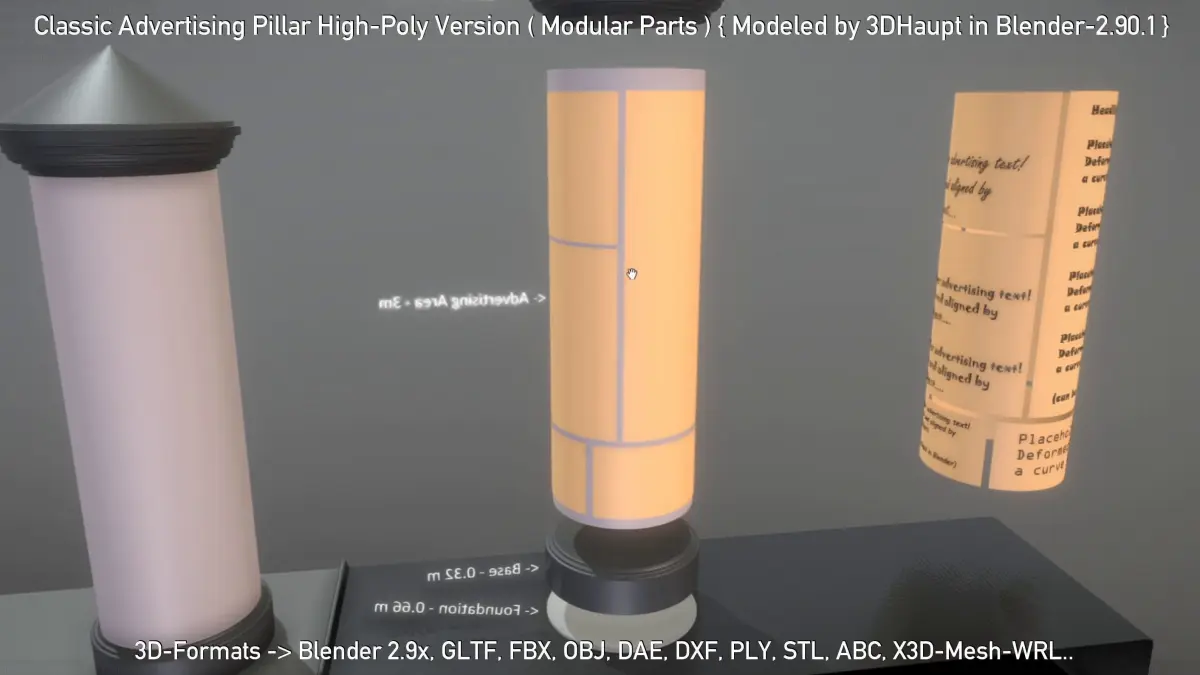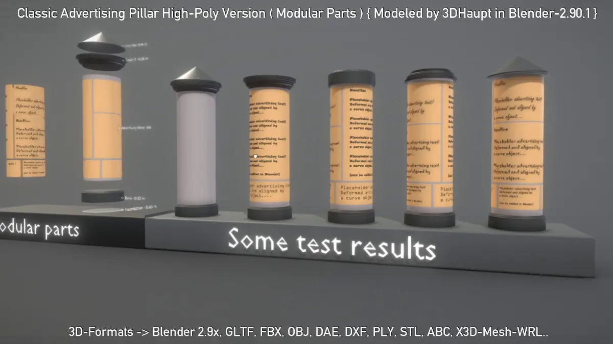 Here is a set of some modular parts made for creating a classic advertising pillar.
