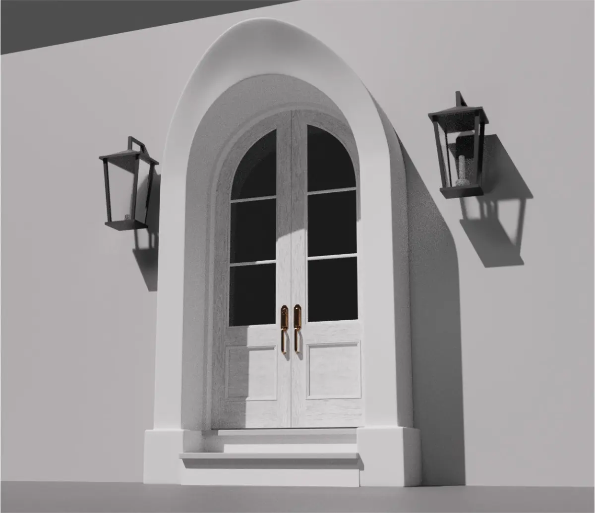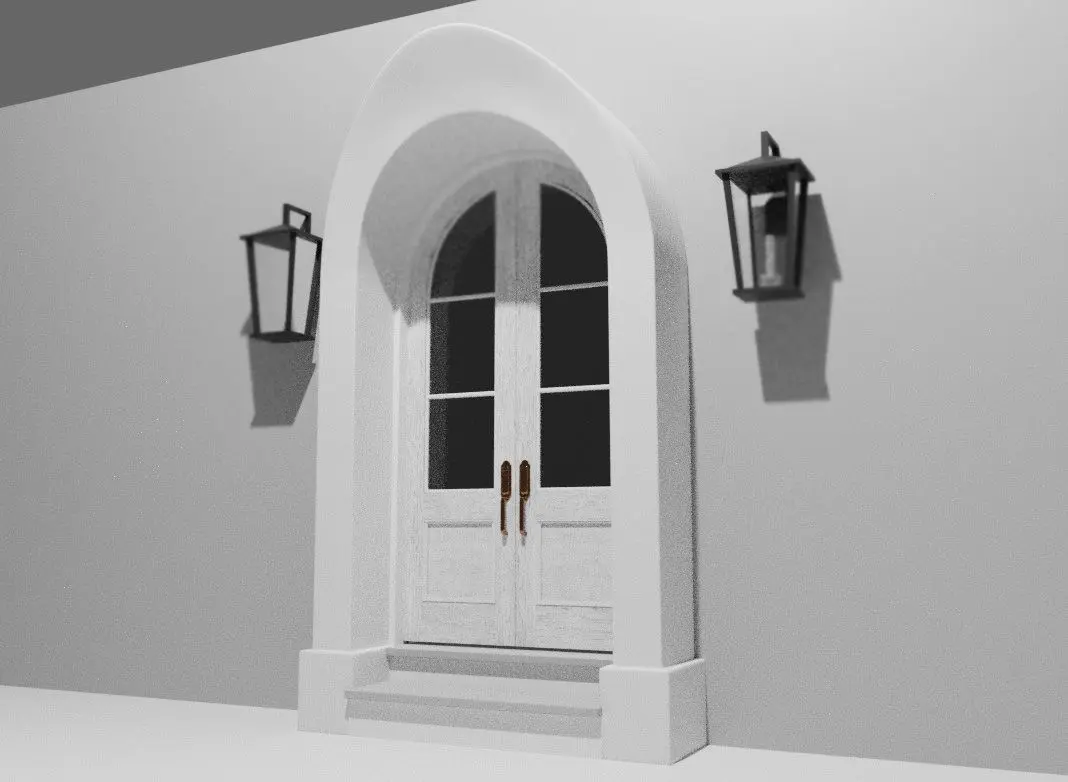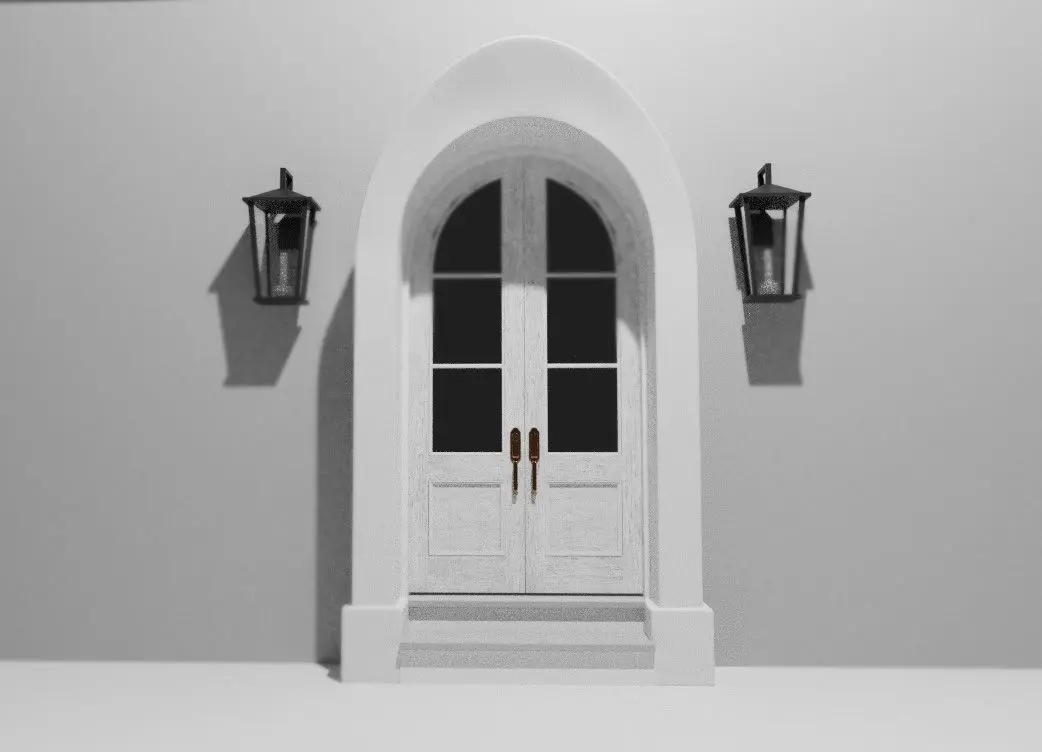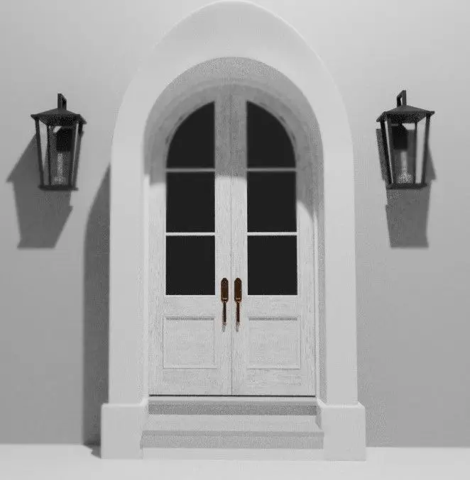 Classic Arch Glass door: This Double swing Main door Features a mixture of classic and modern design similar to the American contemporary country style. Approx. Door per panel dimensions: 0.80 x 3.06 meters per panel Real world scale used.Door moulding/casing , jamb, steps and sample wall as shown in pictures are included.Model and GeometryVertex and Polygon count are based on unsubdividedModel objects can be subdivided, you can add subdivision data when importing fbx if you want subsurf. Geometry is made of quads Glass material may depend on format All parts correctly named.