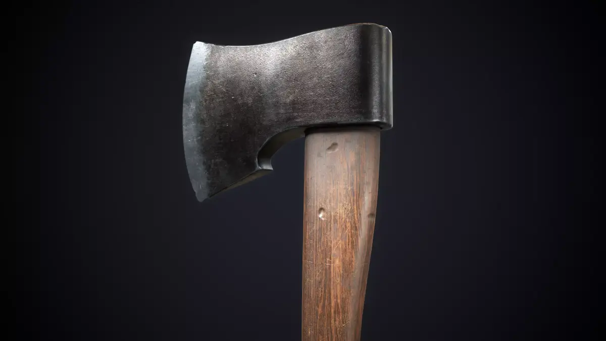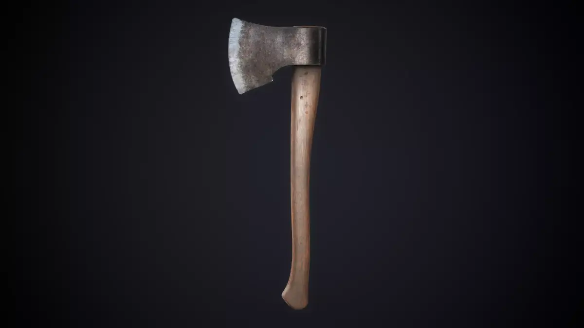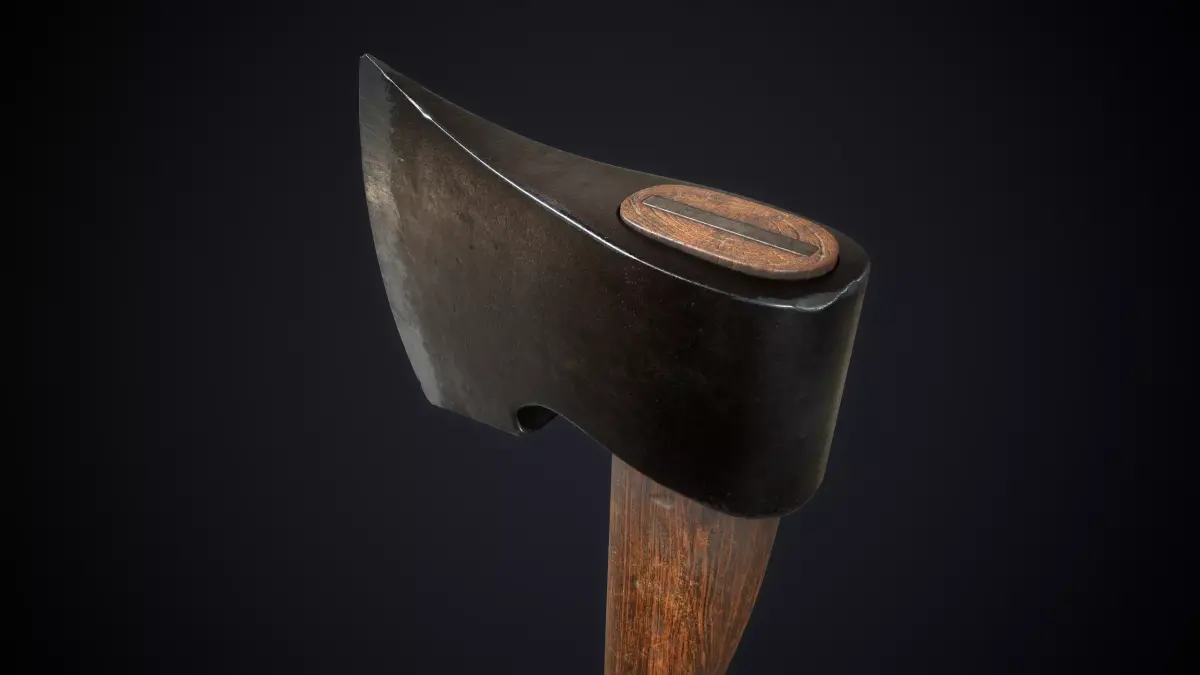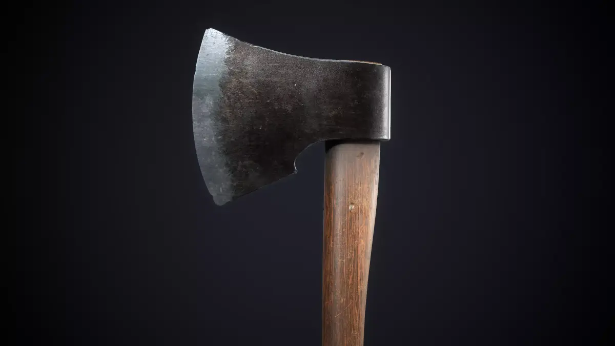 This model features an oval wooden handle and a weathered steel head with a sharp edge.