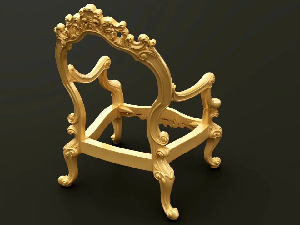 This is a high-quality CNC-ready 3D model designed for woodworking projects. The model is perfect for crafting an elegant and luxurious baroque-style chair base with intricate floral details and curvatures, ideal for classic interiors.