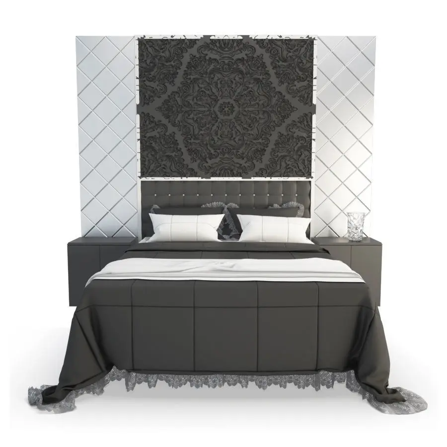 3d models modelled on the basis of existing dimensions: double bed, small wooden bedside tables