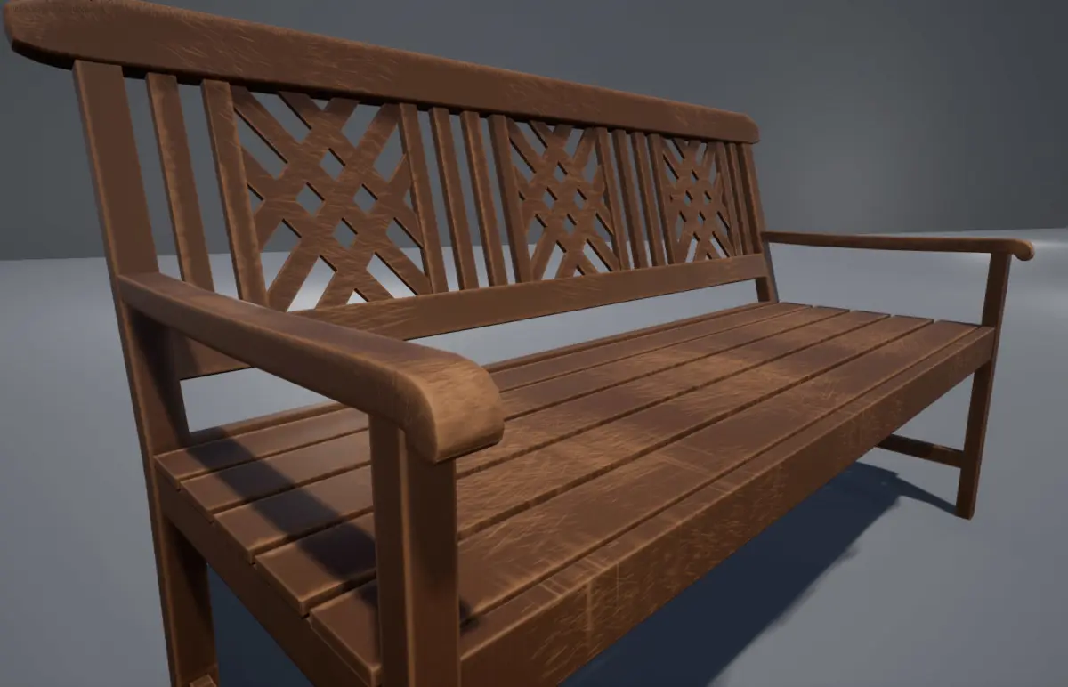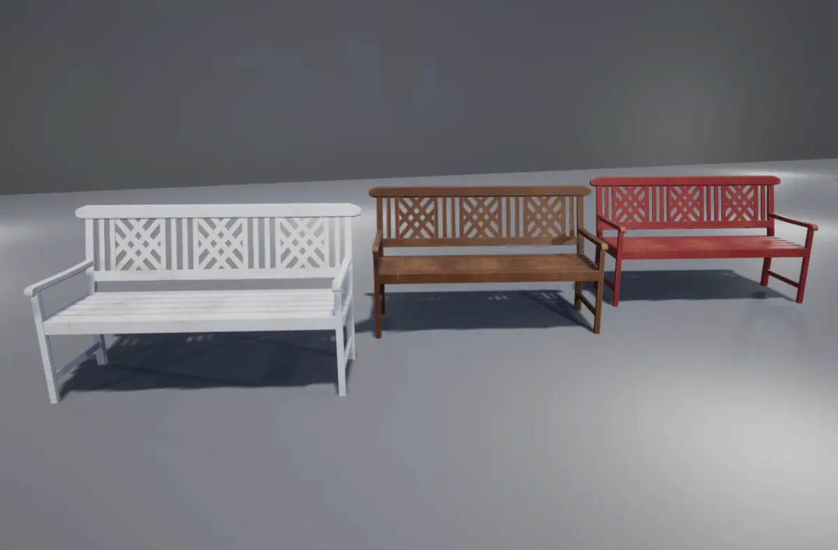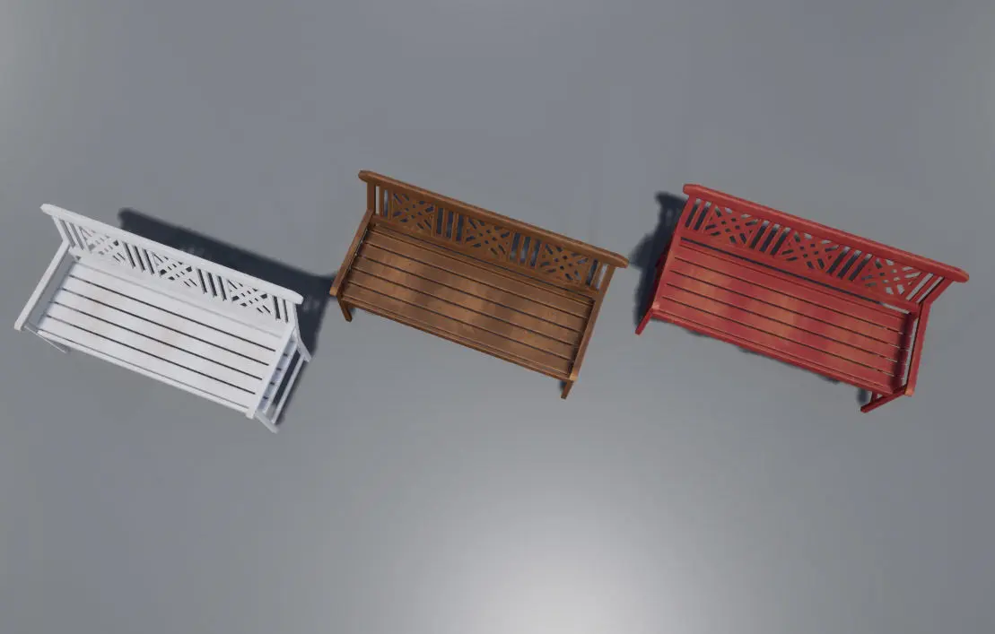 A Classic Bench with three different skins.Red, White and Brown/Wood.