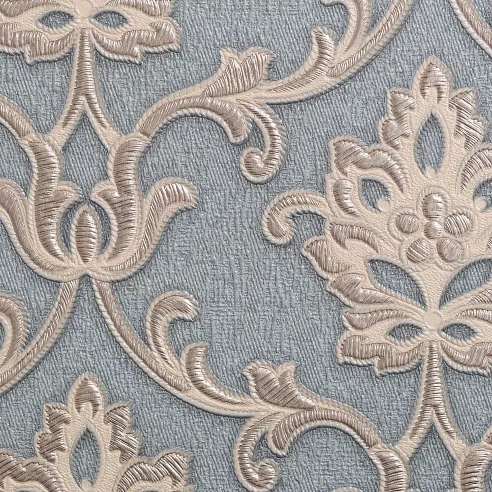 OverviewA timeless damask wallpaper texture in dusty blue with champagne scrollwork, delivering refined elegance for bedrooms, living rooms, boutique hotels, and formal dining spaces. The sculpted motifs feature fine ribbed highlights over a subtle woven ground, providing rich depth while remaining calm and versatile.