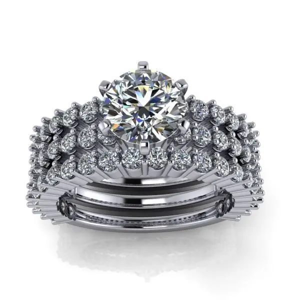 Classic Bridal Engagement Ring with wedding band 6 prongs 3D print model