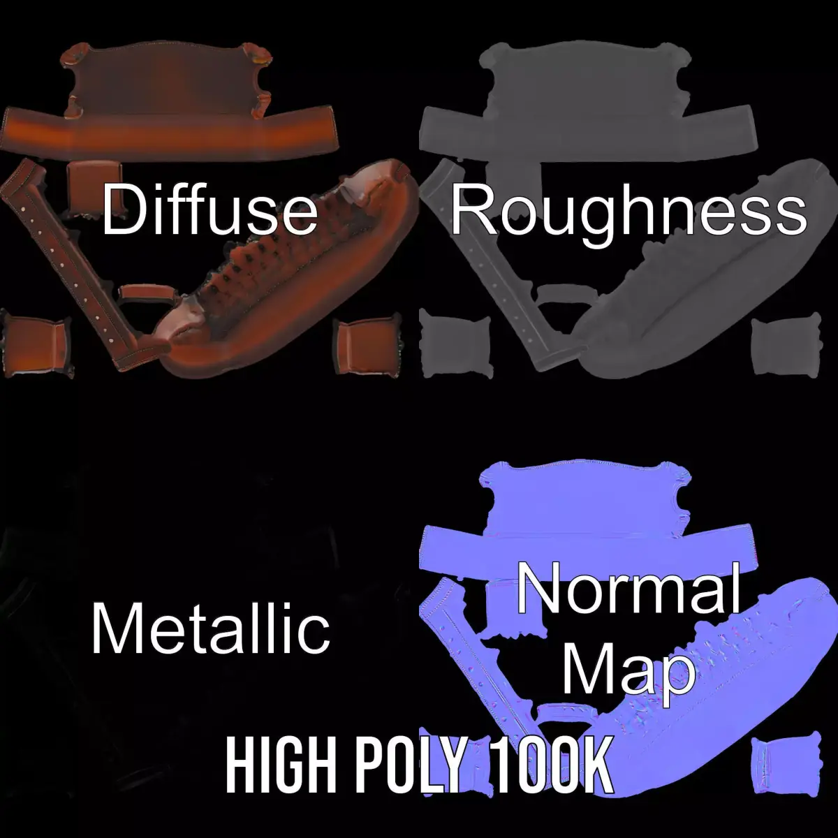 The model's textures are PBR, Diffuse, NormalMap, and reflection/roughness/metallic, which are suitable for any modern rendering engine. All models are accurately unwrapped and have no overlapping UV.