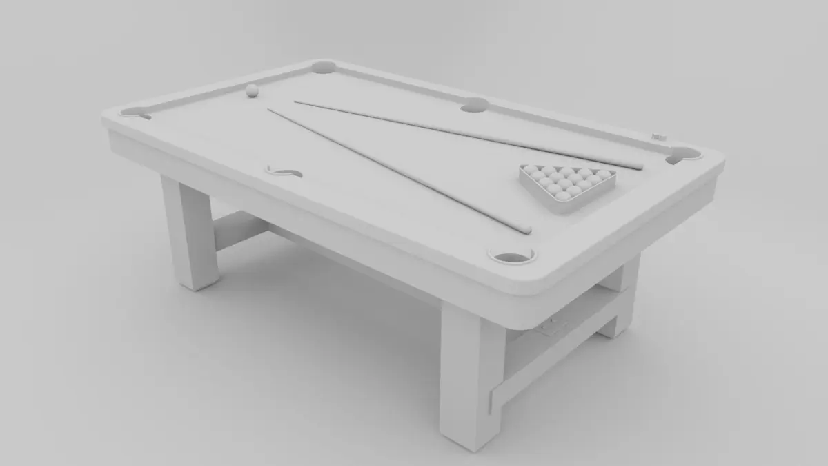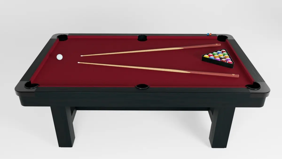 High-quality 3D model of a wooden pool table with detailed PBR textures. The model is created with Blender and rendered with Cycles.