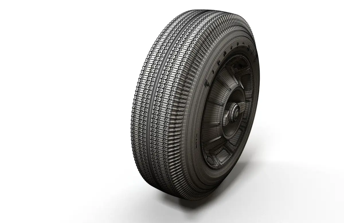 Classic car highpoly wheel. Firestone tire.