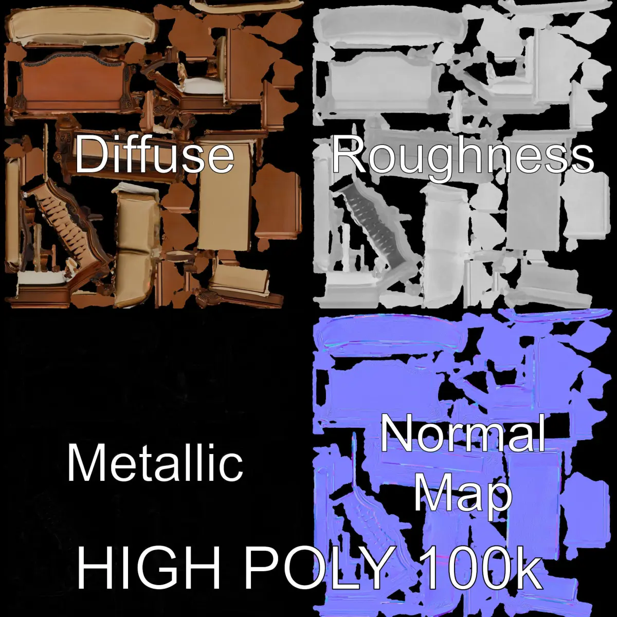 This Classic Carved Bed Model Pack offers three levels of detail: low-poly (1000 triangles for mobile), middle-poly (10,000 triangles for environment), and high-poly (100,000 triangles for production rendering). Ideal for visualizations in 3ds Max, Maya, Cinema4D, Blender, and game engines like Unity and Unreal, the pack supports interactive presentations with adjustable levels of detail (LOD System). Perfect for bedroom renderings, interior design visualizations, and historical set builds. The model utilizes PBR textures with Diffuse, NormalMap, and reflection/roughness/metallic maps, compatible with modern engines. Accurately unwrapped with no overlapping UVs, all textures are 4096x4096 in size. The first image is the reference used for creating the 3D model. It is important to carefully evaluate the quality of the model by examining the preview images that display the topology and polygonal mesh. These previews (WIRE and WEB 3D Preview) clearly demonstrate how accurately the model matches the original reference and how well the geometry has been executed. Enjoy exploring this detailed 3D model, and if you like it, please give it a like and leave a comment!