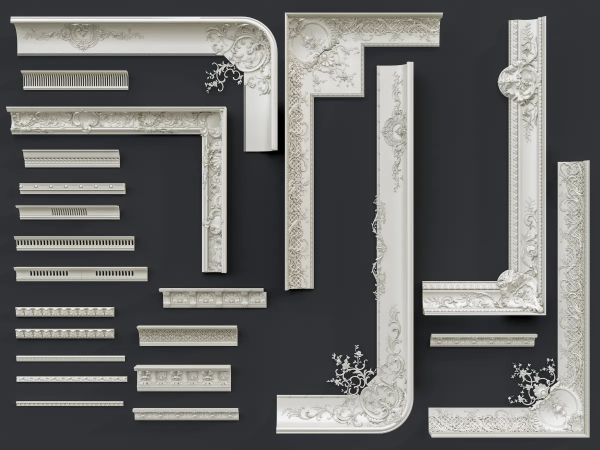 Elevate your architectural designs with our meticulously crafted 3D models featuring timeless classic carvings, intricate moldings, and elegant gypsum cornices. Each model is meticulously designed to capture the essence of classical craftsmanship, adding depth and sophistication to your projects. Whether you're an architect, interior designer, or hobbyist, our collection offers unparalleled detail and authenticity, allowing you to bring historical charm and grandeur to your virtual creations. From ornate motifs to intricate patterns, our models provide endless possibilities for enhancing your renderings, animations, or 3D prints. Impress clients, showcase your creativity, and transform ordinary spaces into extraordinary works of art with our premium 3D model collection. Elevate your designs to new heights of sophistication and refinement with our timeless classic carvings and gypsum cornice collection.