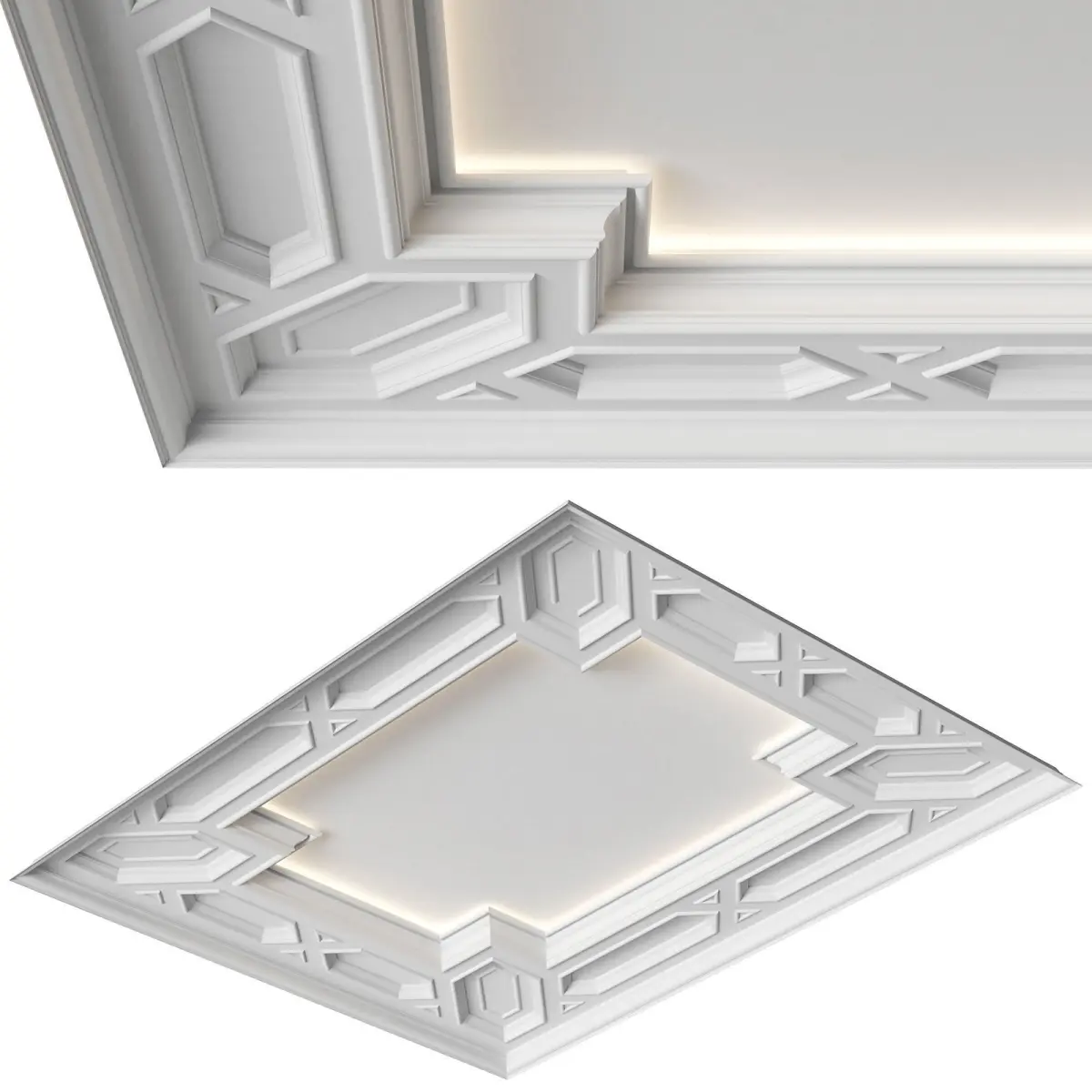 Classic coffered ceiling custom-made with hidden lighting. The model is assembled for subdivision. When using import formats, please apply MeshSmoth/TurboSmoth with 2-3 iterations.