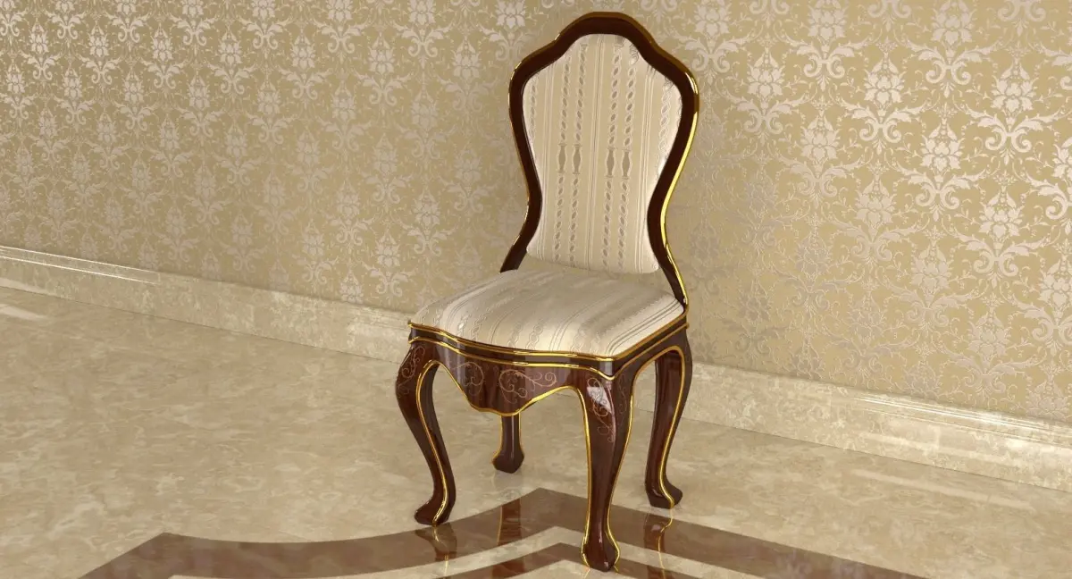 Classic Chair 3D Model. Modeled in Blender 2.73, Preview images rendered with Cycles(No Post Production). Model in real world scale W:49.2 cm H:100 cm D:49.9 cm. Subdivided polygon mesh made of quads only. Poly count(without subdivision): Verts:2,458 Faces:2,454. Custom wood textures: 4000x4000. Suitable for close up renderings. Easy interchangeable wood texture(decorations mapped independently). Overlapping UVs are those of the two halves that are symmetrically mapped. Inside the single half the UVs are not overlapping. Render ready. Light and camera setup not included. FBX version includes instructions for use of included textures. Environment not included in the release.
