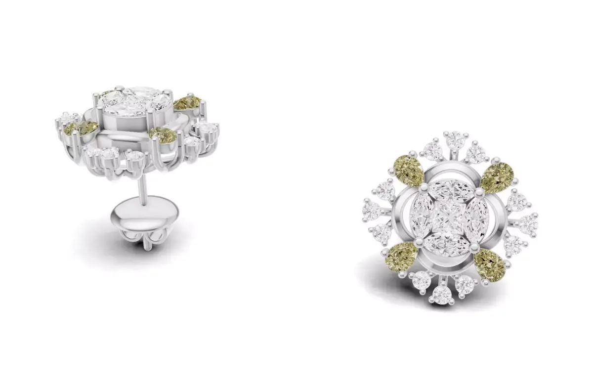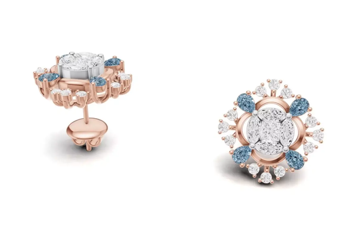 Classic Designer Diamond Cluster Earring With Gemstone 3D print model