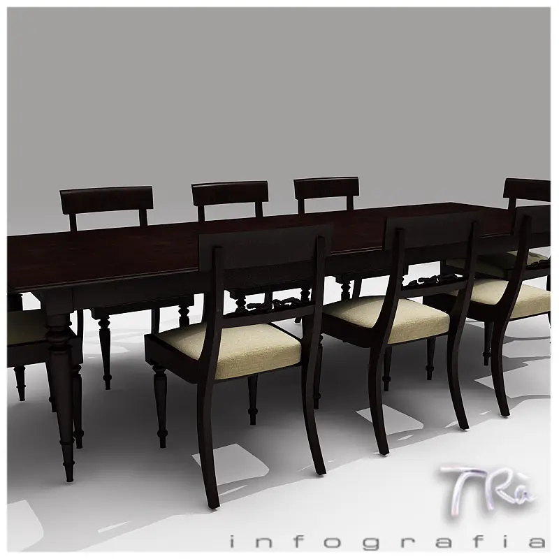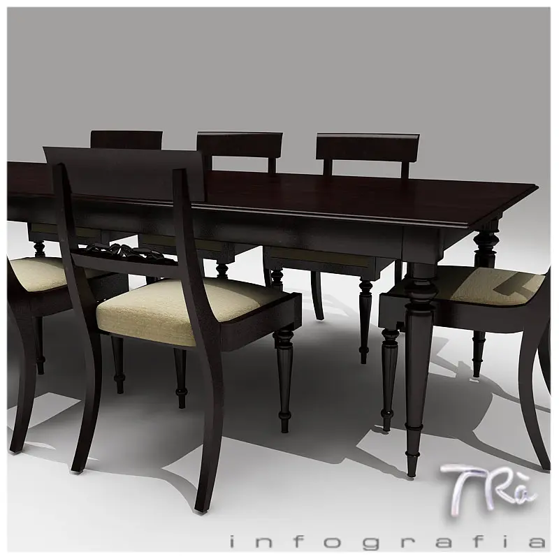 Model of classic dinner table for interior desings of modern or classic spaces, modeled with Max 2010 and Vray materials. Includes materials and maps.