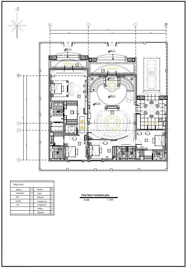 Classic Duplex Villa Plan |5 Bedrooms (4Master) + Guest Lounge + Outdoor Kitchen + Elevator | DWG + PDF + PSD