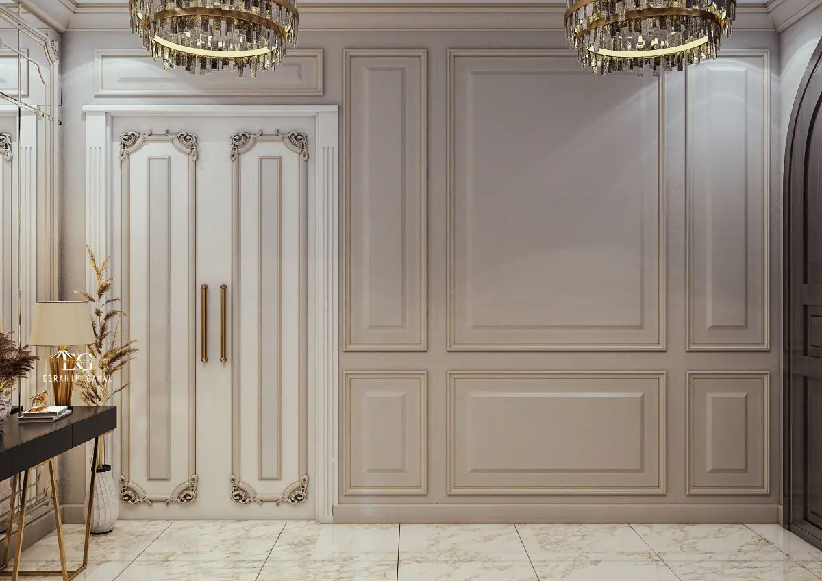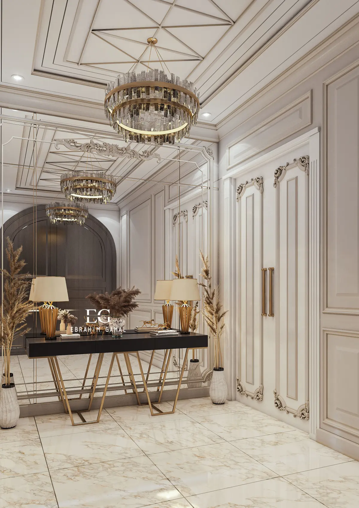 Neoclassic entrance looby for villa , i used 3ds max in modeling - vray materials , very clean modelling and materials all models i used in this scene pro models not free all materials are vray materials, its all pro furniture the file is ready to drop in any scene or any design you want just pick models from it and materials and use it in your design easily also you can use the scene light to improve your light system in render and get more reality vray materials this is a scpace