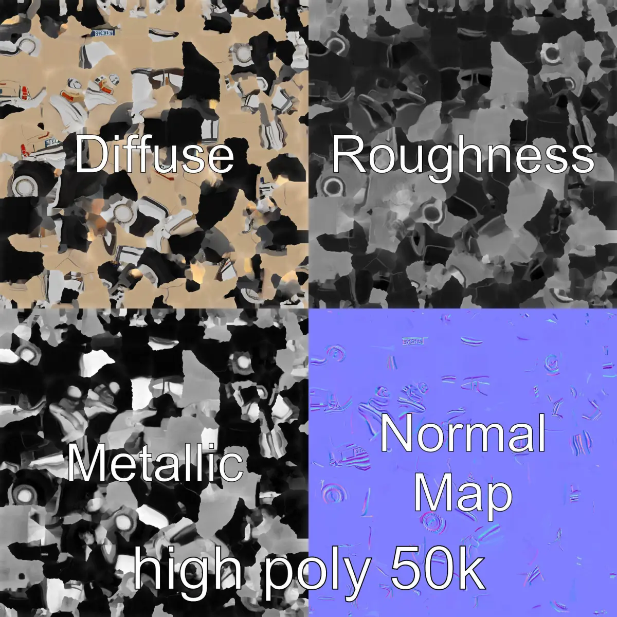 The model's textures are PBR, Diffuse, NormalMap, and reflection/roughness/metallic, which are suitable for any modern rendering engine. All models accurately unwrapped and have no overlapping UV.