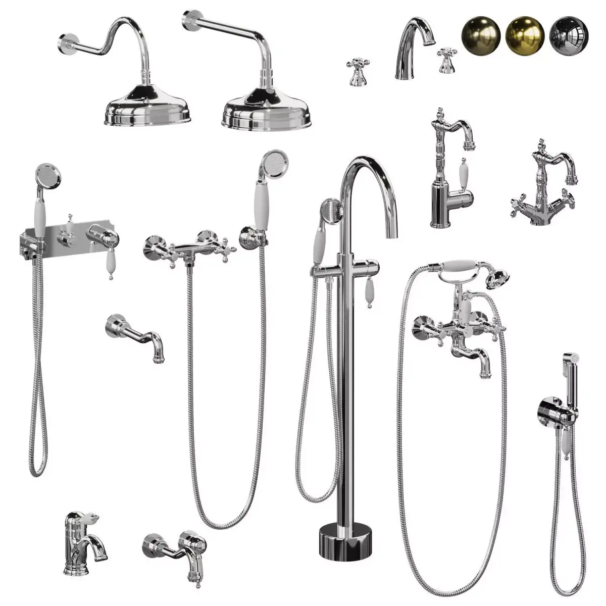 A set of faucets in the classic style of Boheme Medici3 colors: bronze. gold, chrome. If necessary, the metal color can be easily edited with the CoronaColor/VrayColor card.TurboSmooth was applied for 1 iteration during renderingThe model has the correct scale. The sizes of the faucets correspond to the real onesCoronaLegacy materials, renderings made in Corona3ds max 2018, VRay+Corona, FBX
