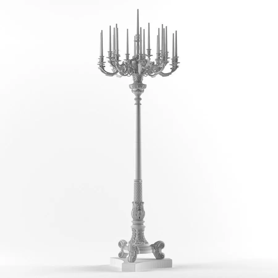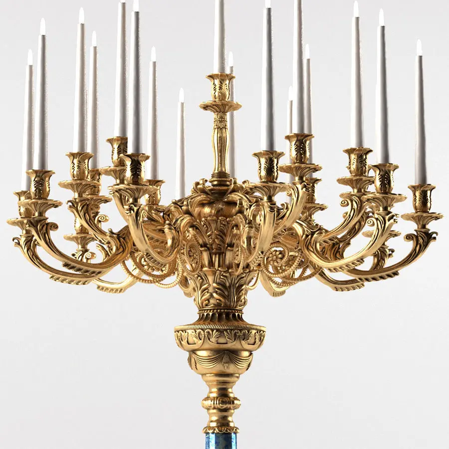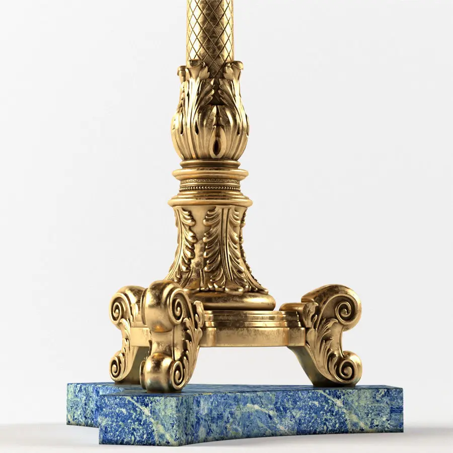 Floor lamp BALDI. Floor-standing classic candlestick (candelabrum) BALDI in patinated gold and lapis lazuli marble for the palace interior.