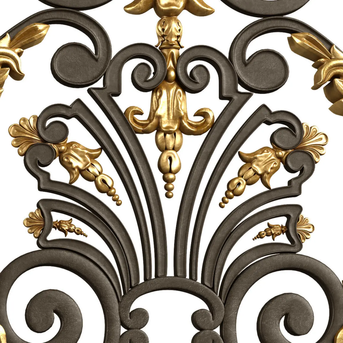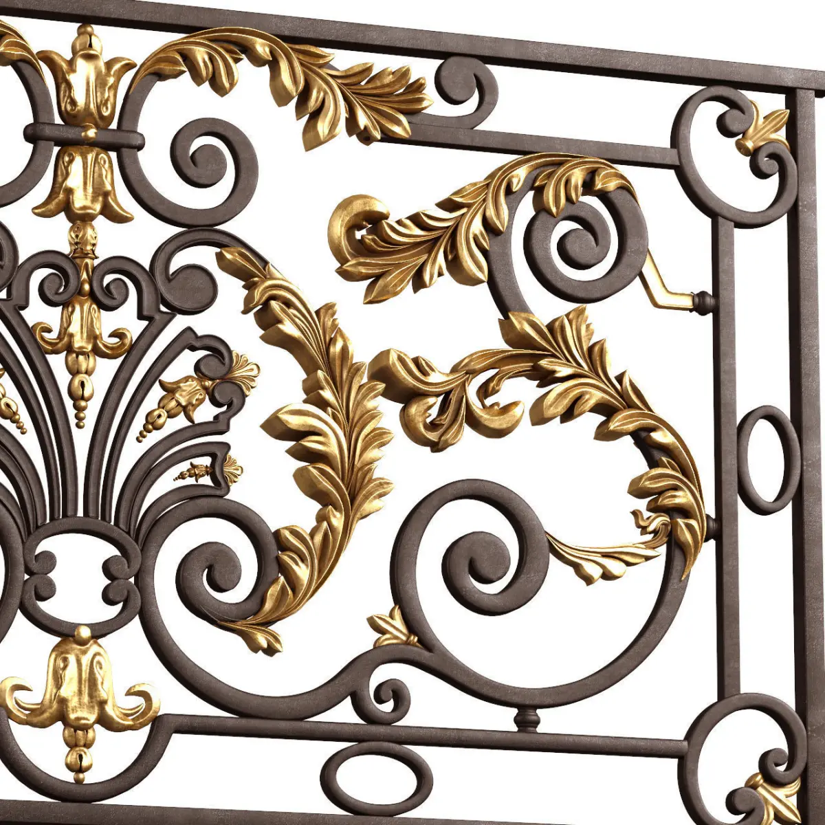 Classic Artistic Tantiema Forged Fence with gold-plated cast inserts.