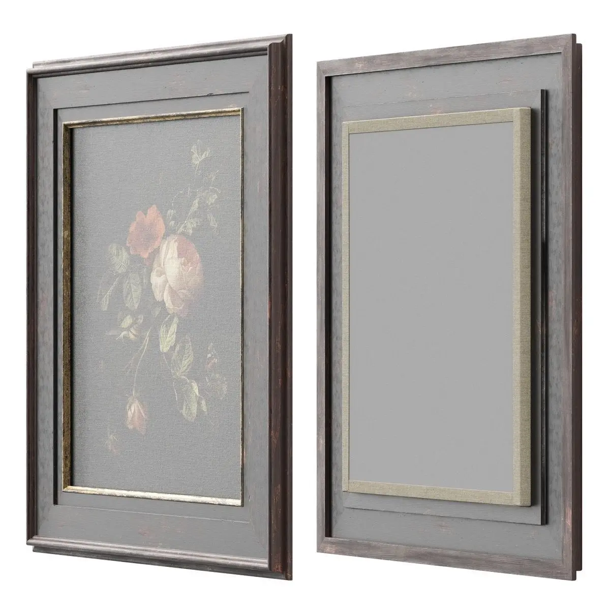 Floral still life in a classic wooden frame with gold accents.