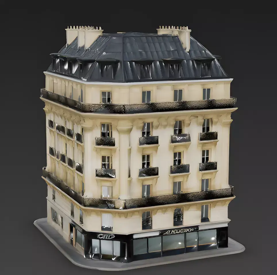 The Overall Concept This asset is a quintessential Haussmann-style building, the iconic architecture of Paris. It is a corner block designed to sit at the intersection of two streets, making it perfect for creating realistic European city centers.