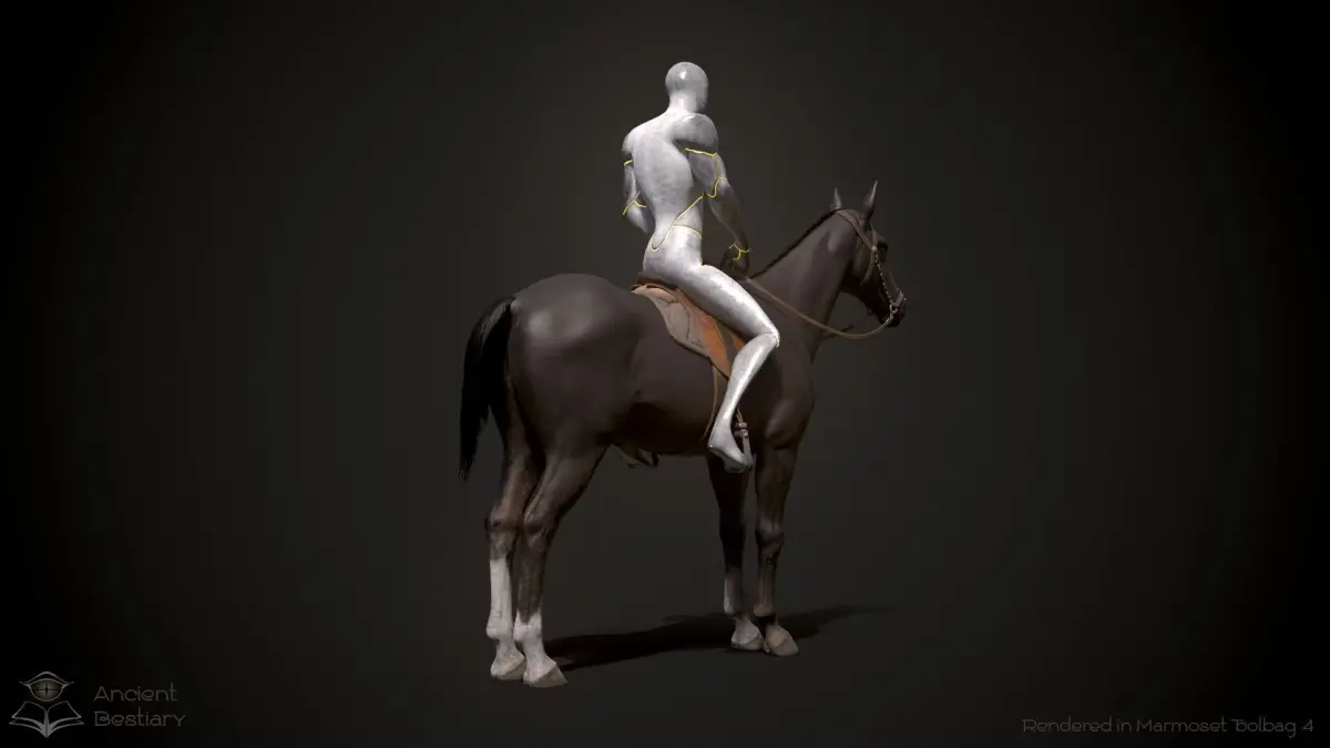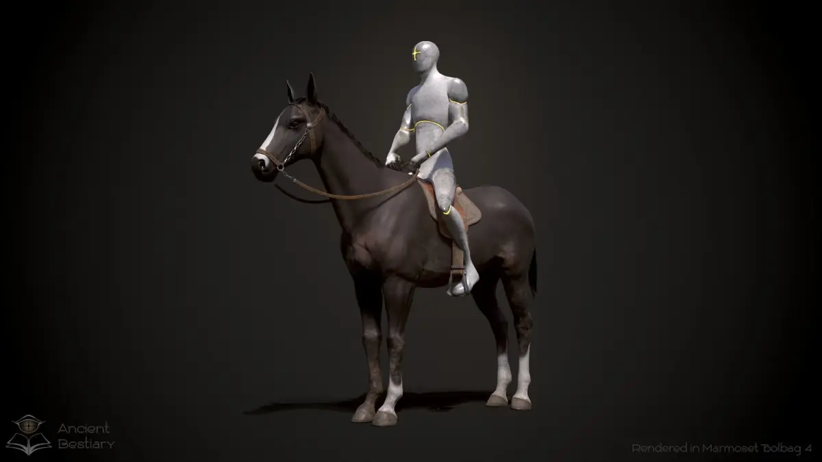 - 4K texture sets for the rider, horse's body, horse's equipment and 2k texture set for the horse's hair (Metal-Roughness Pipeline)
