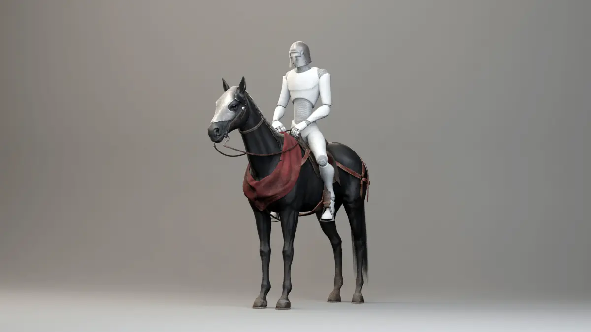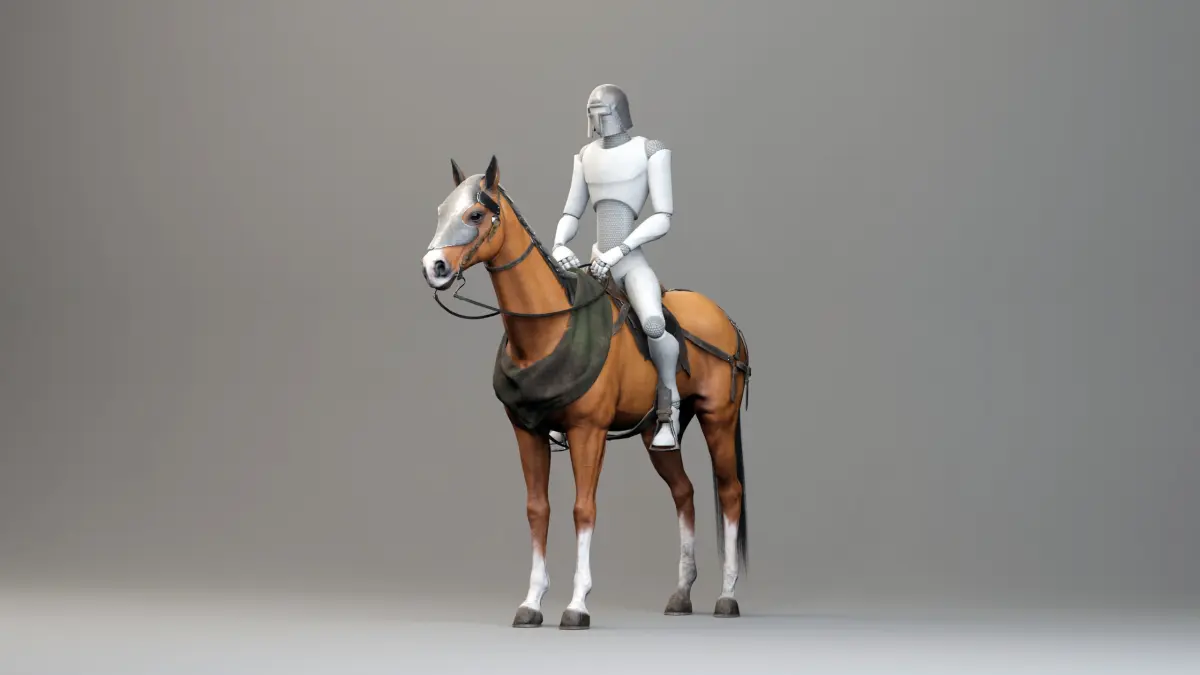 - 4K texture sets for the rider, horse's body, horse's equipment in 3 color variations (Albedo, Roughness, Normal, Metal)
