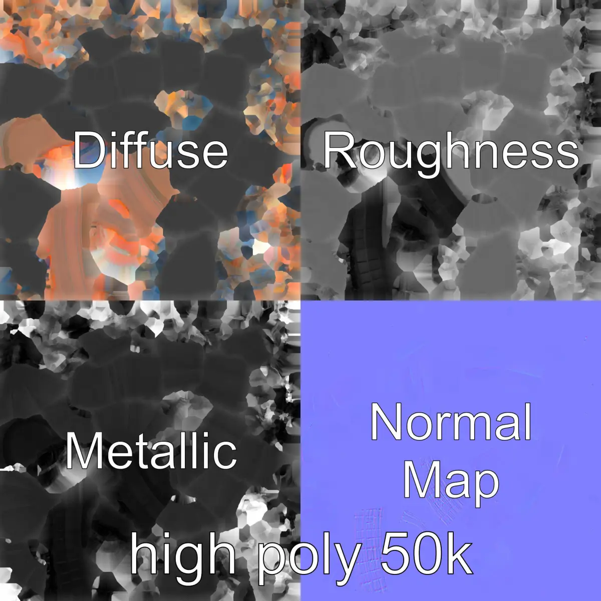 The model's textures are PBR, Diffuse, NormalMap, and reflection/roughness/metallic, which are suitable for any modern rendering engine. All models accurately unwrapped and have no overlapping UV.