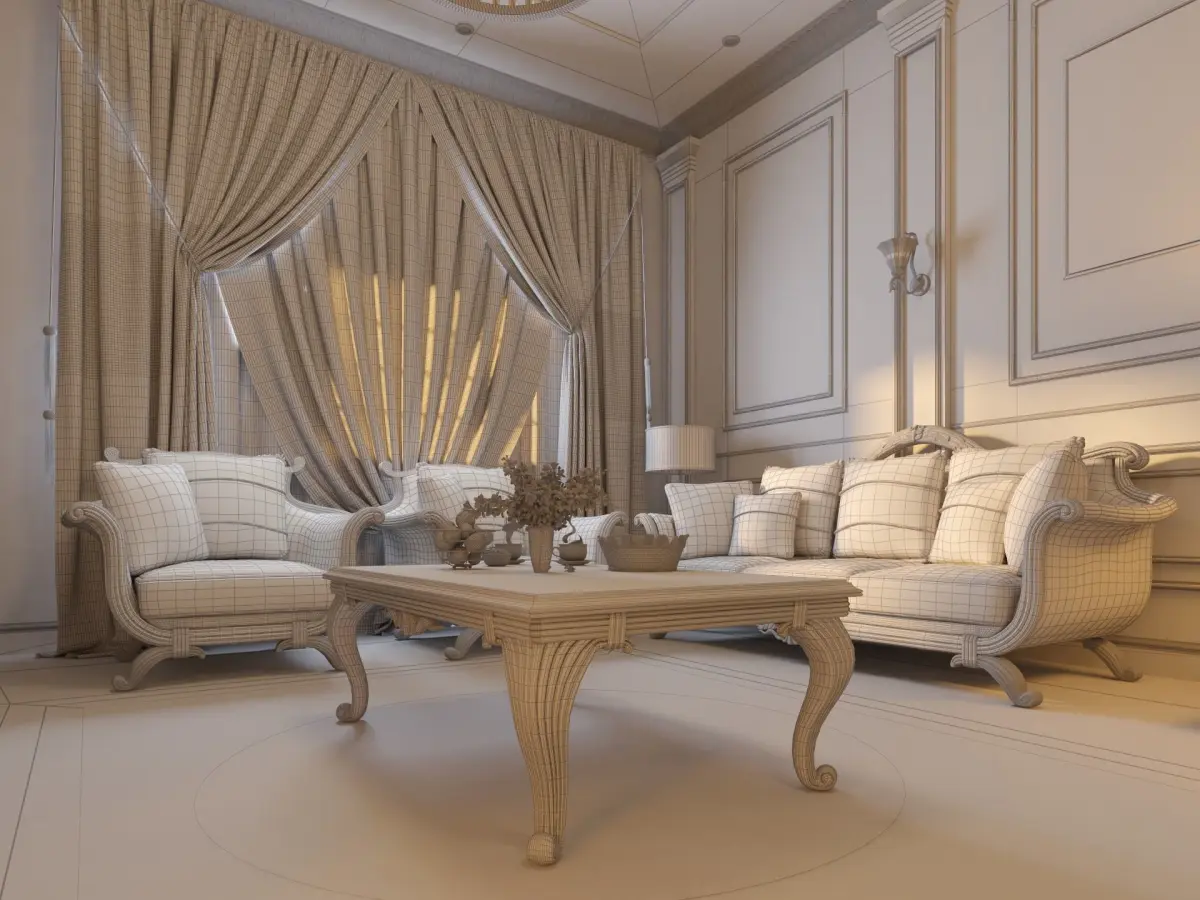 Sitting Room , Furniture with Golden wooden paint for legs and frames wiyh luxury look Golden wooden leg tables with glass top . travertine marble texture inside the wall frame Marable floor . Cornic and molds The scene Availabe with tow version one for 3ds max 2016 and othe for the blender 2.93 i used 3ds max 2016 - and Vray3.60.03 for materials and lights .also in blender version i used cycles for render The file models is ready to drop in any scene or any design you want just merg models from it and materials and use it in your design easily You can use the scene light to improve your light system in render and get more reality .