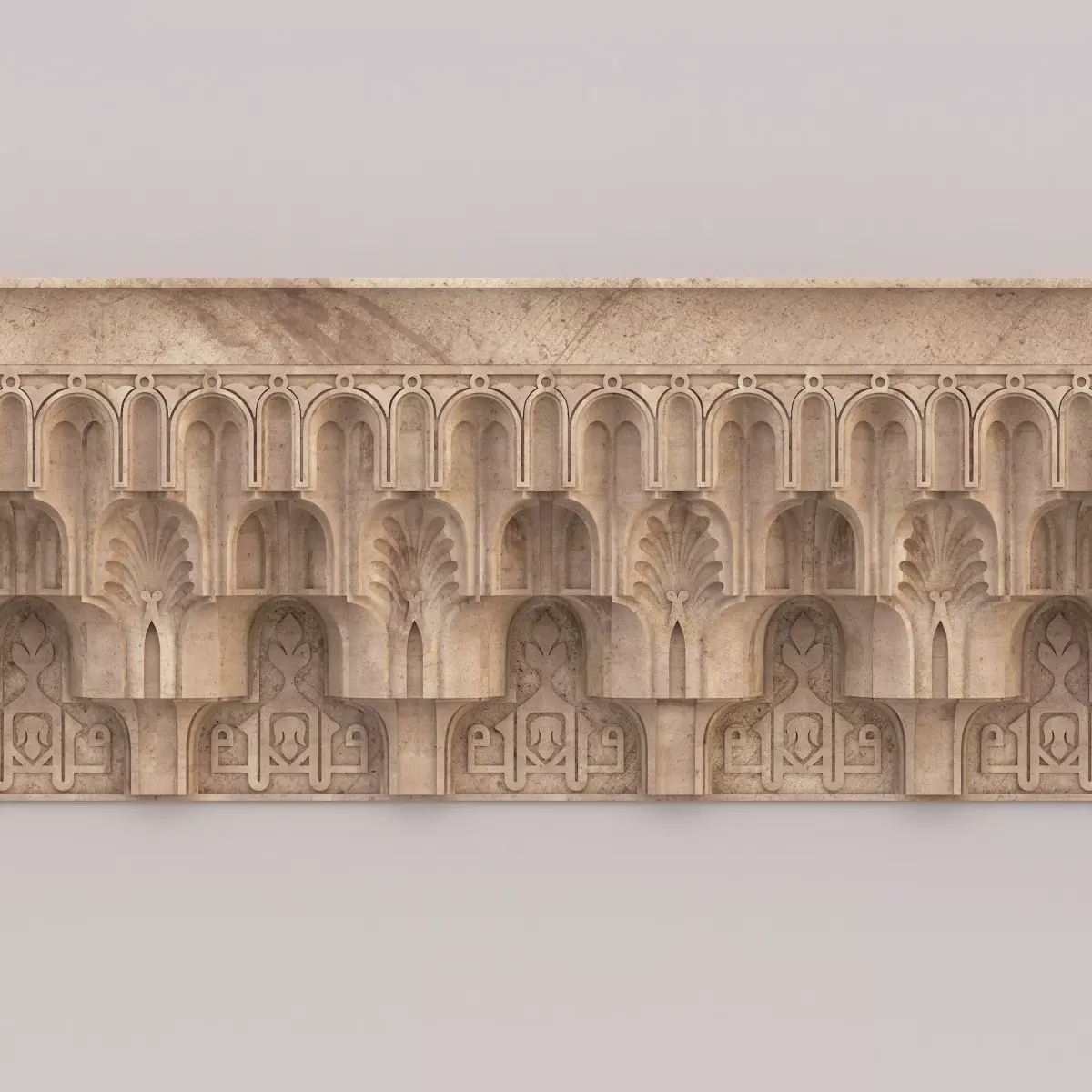 Classic Islamic Muqarnas Cornice 0013ds max modeling3ds max 2024Vray 6Polygons: 107 731Vertices: 114 225Unwrapped: Fully unwrapped , non-overlappingFormat : FBX, OBJ, STLHeight: 57 cmLength: 23 cmWidth: 232 cmTextures:All textures are seamlessConcrete_Diffuse - JPG 4096x4096Concrete_Bump - JPG 4096x4096Dirt_Texture - PNG 2200x2200